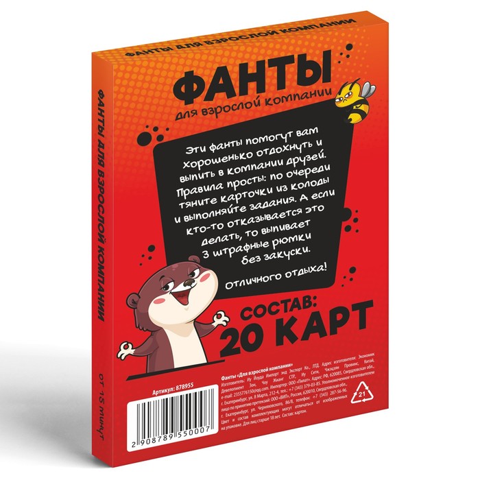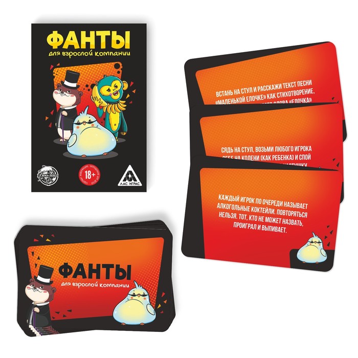 По очереди вытягивайте карточки с фантами и выполняйте самые разные весёлые задания. Справились? Отлично! Нет? Тогда выпивайте три штрафные подряд без закуски.