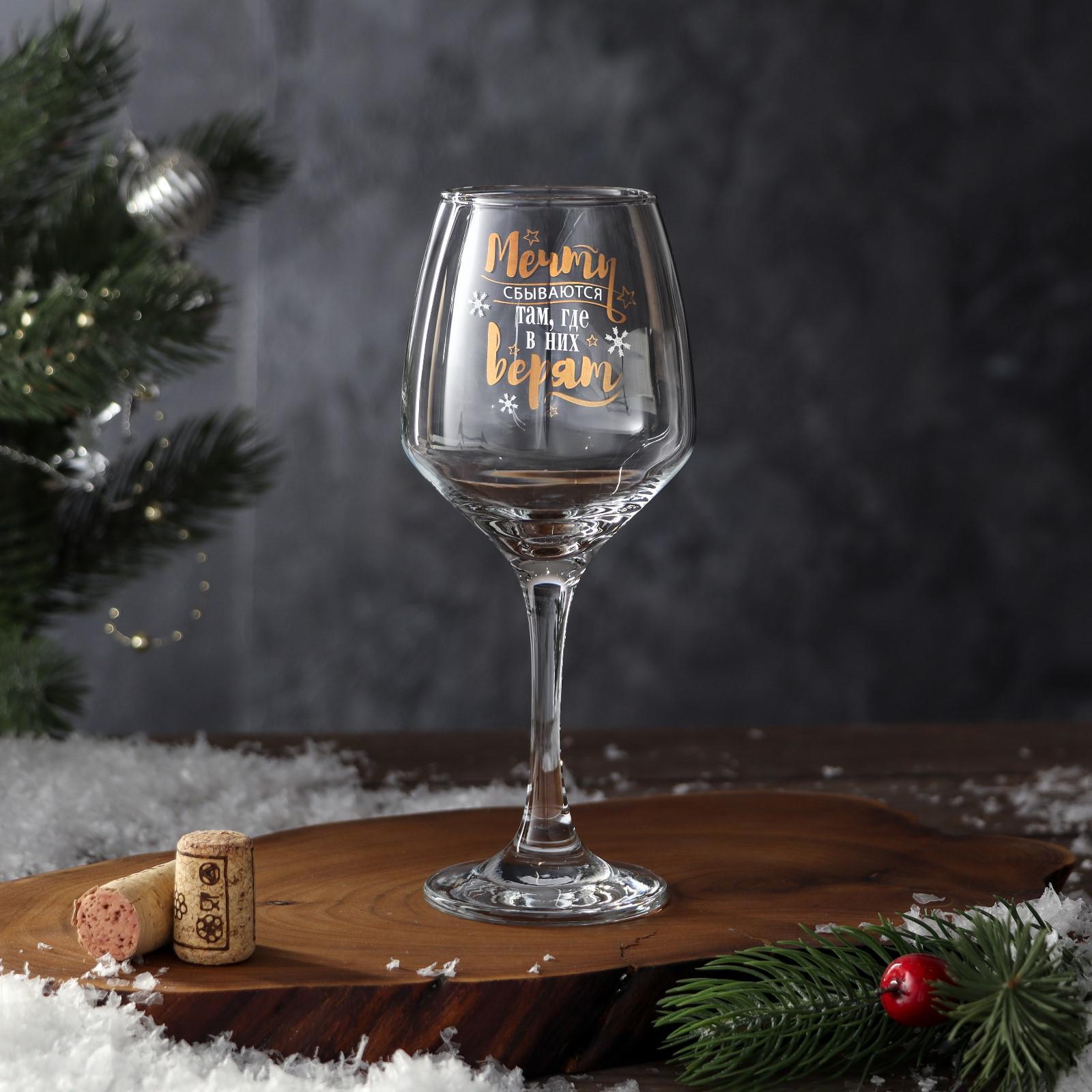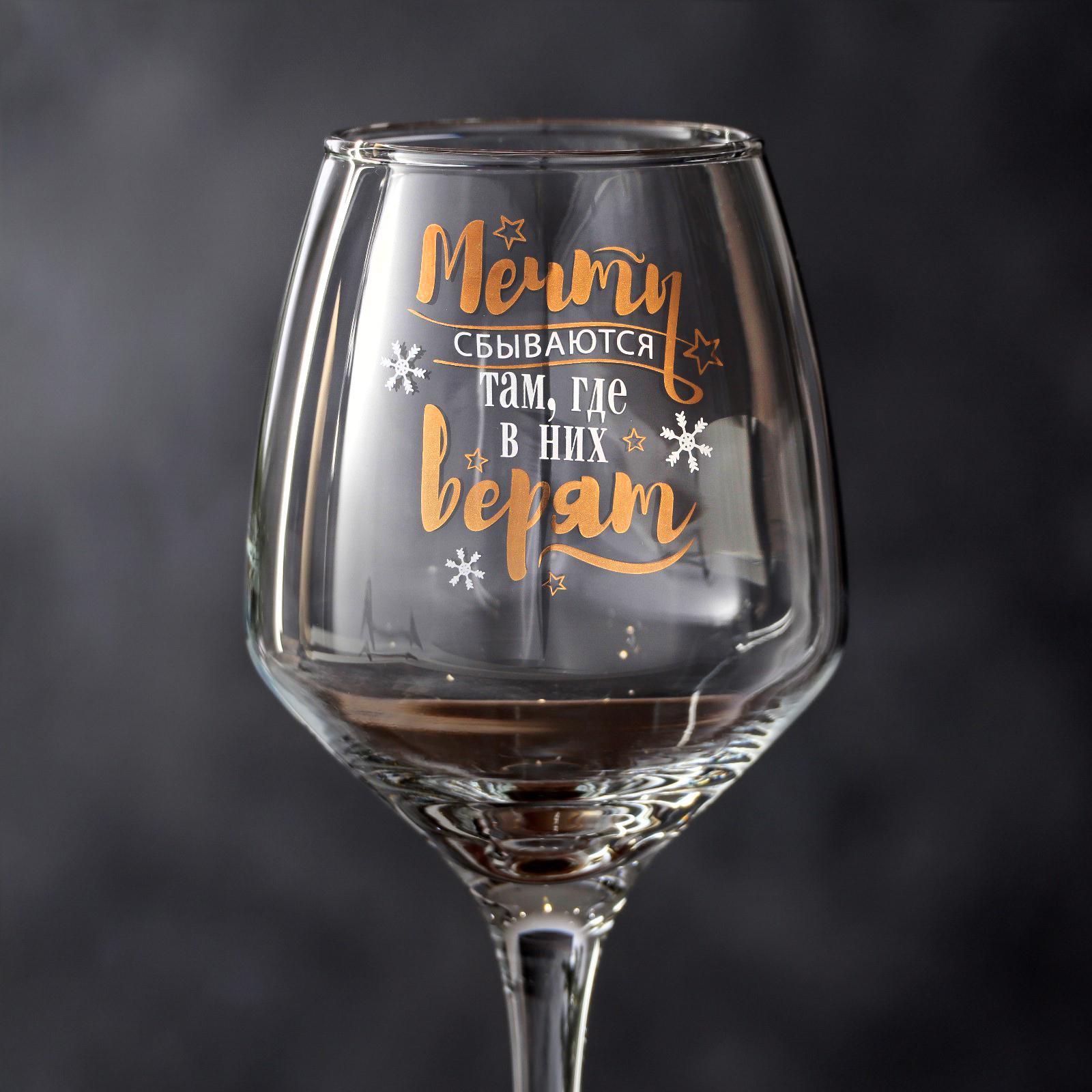 Бокал для вина «Мечты сбываются» 350 мл., деколь