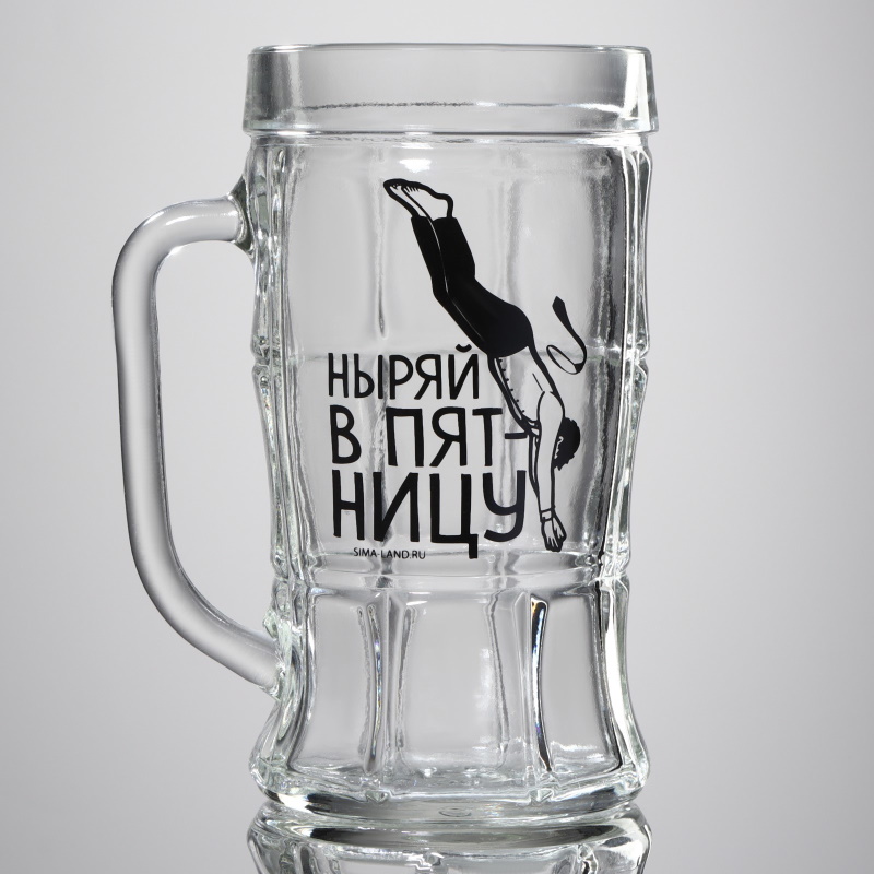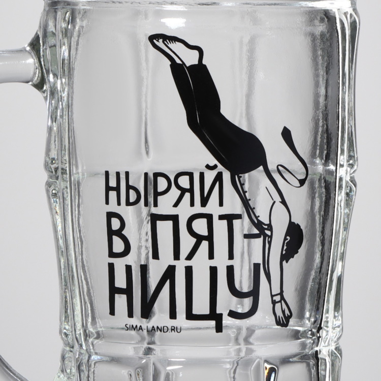 Кружка стеклянная пивная Ныряй в пятницу, 500 мл