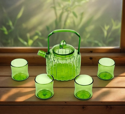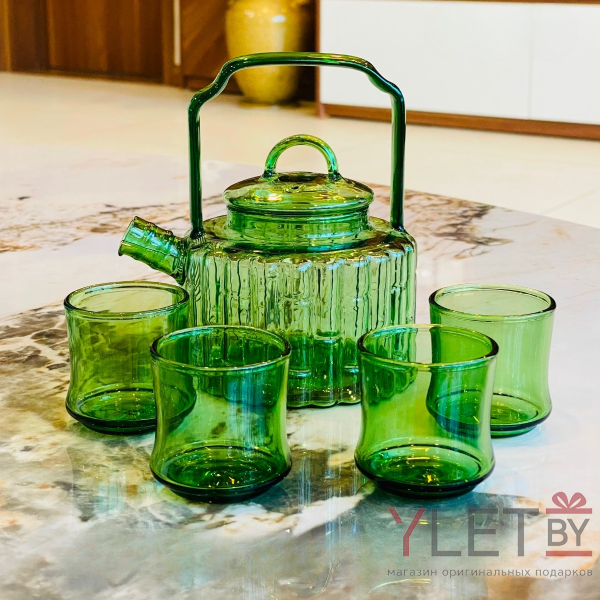 Набор премиум из боросиликатного стекла "Чайный дом" (чайник + 4 чашки)