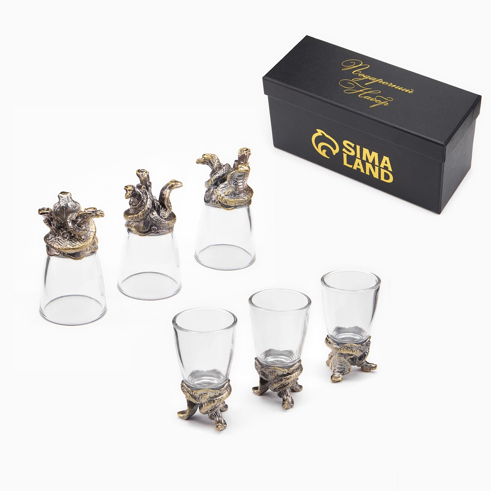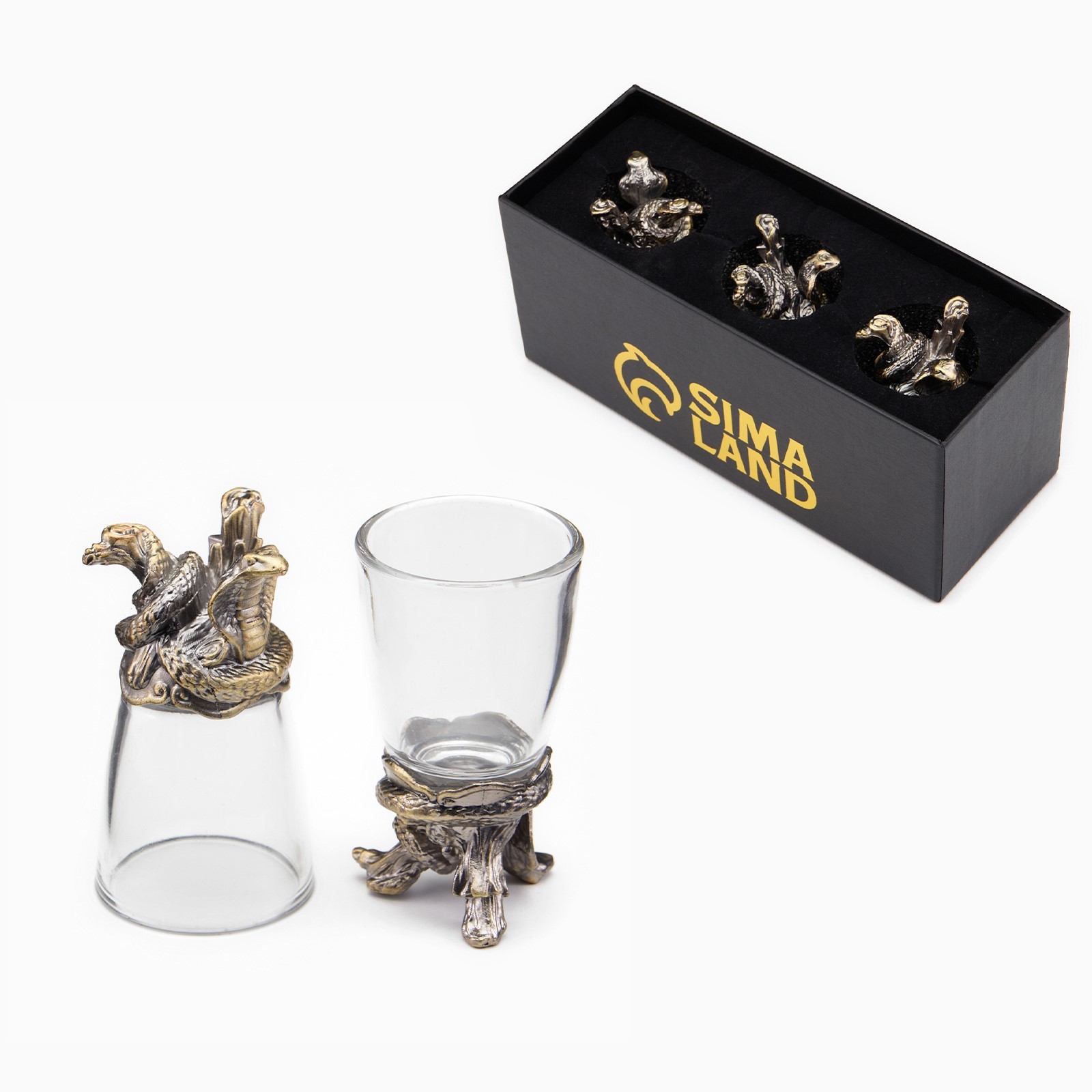 Стопки для водки символ года "Змеи", набор на 3 персоны, стопка 30 мл, новый год, бронза