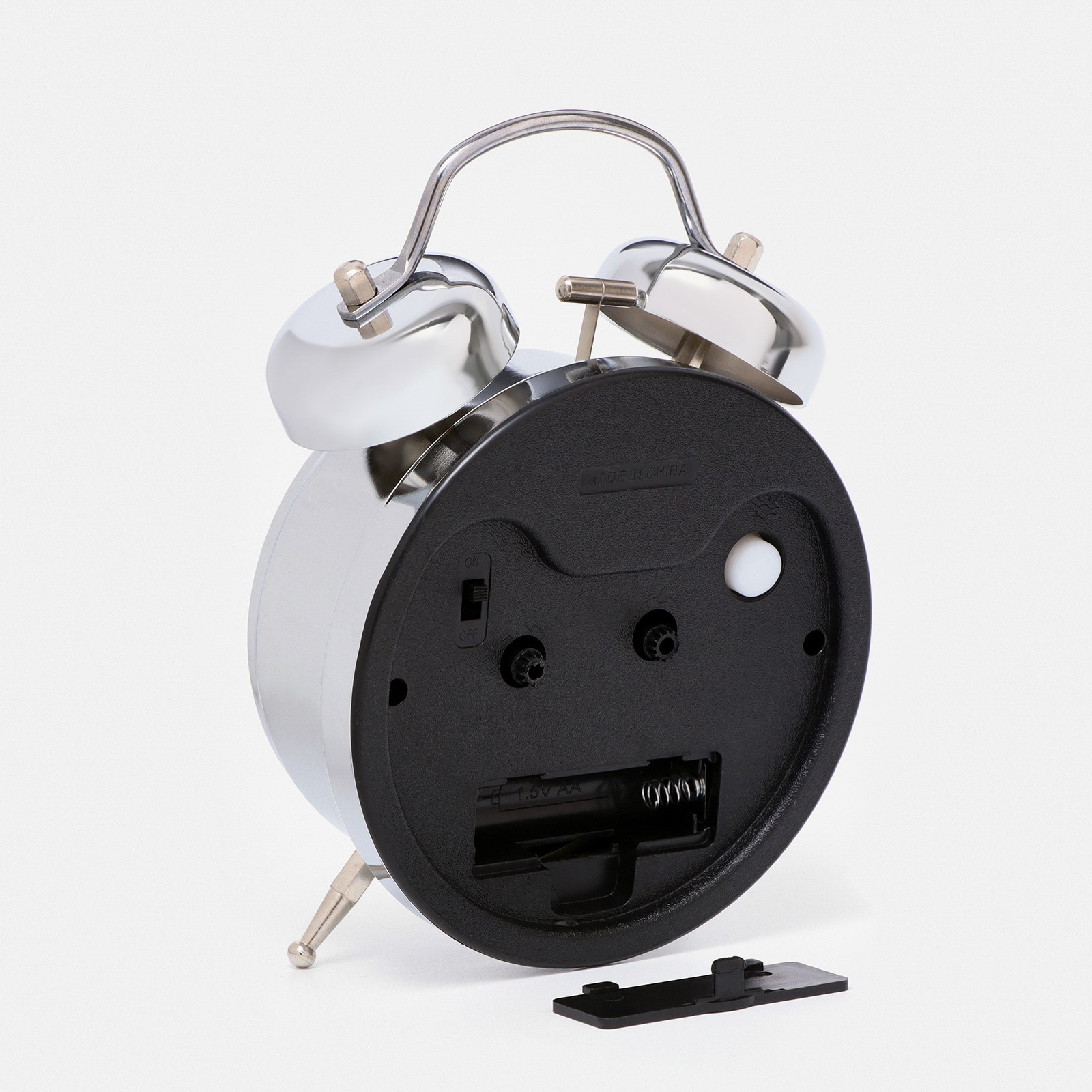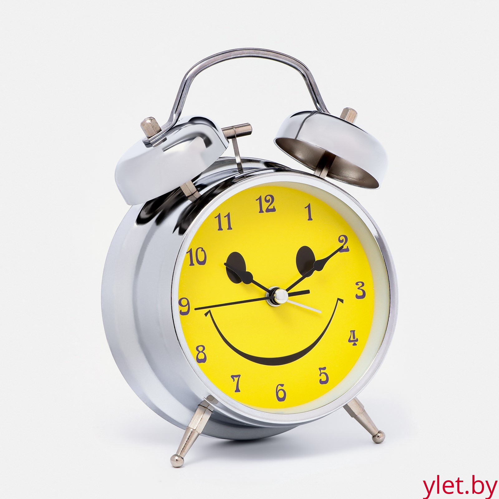 Будильник «Смайл» металлический серебристый, циферблат d=11.5 см, с подсветкой