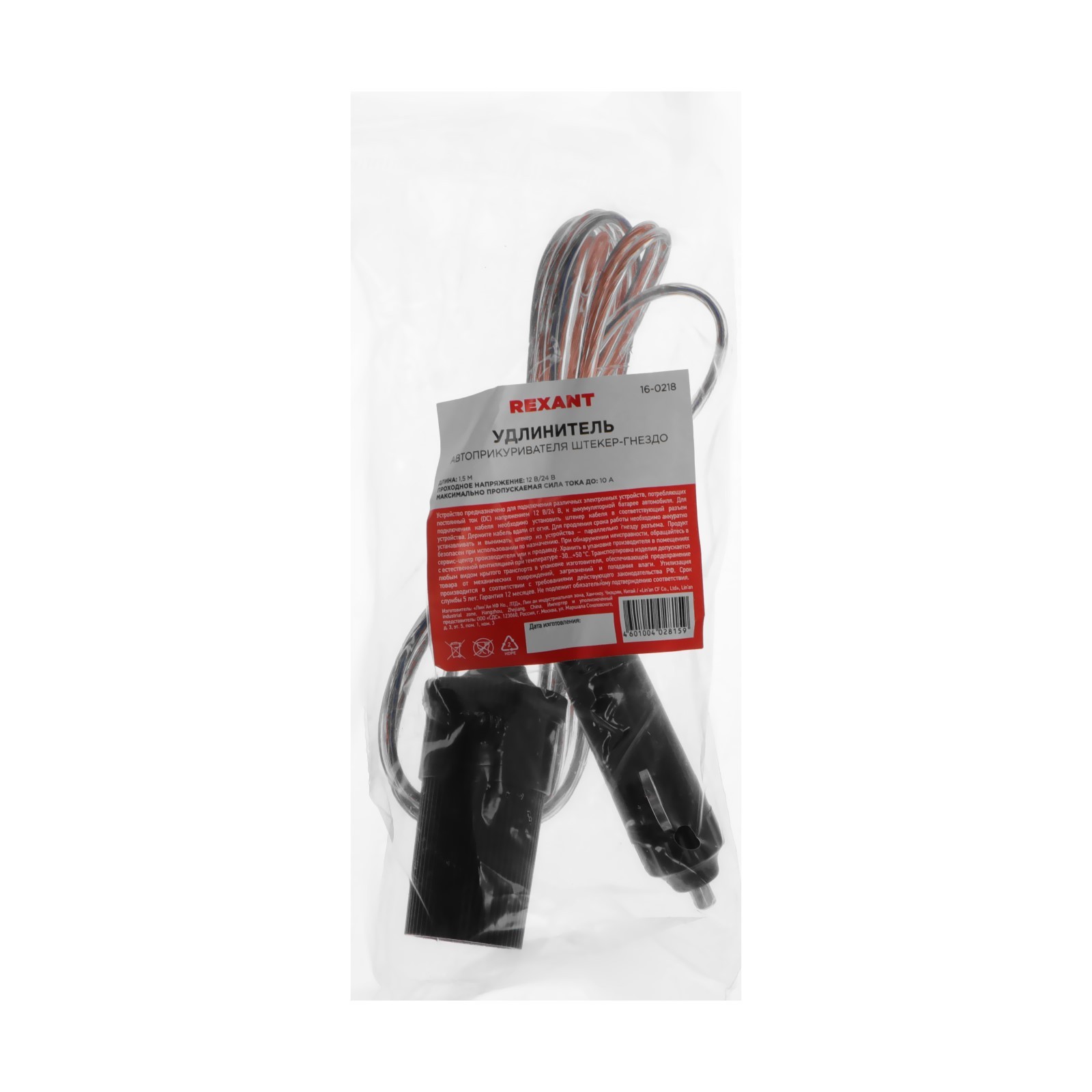 Удлинитель автоприкуривателя штекер-гнездо Rexant, 1,5 м