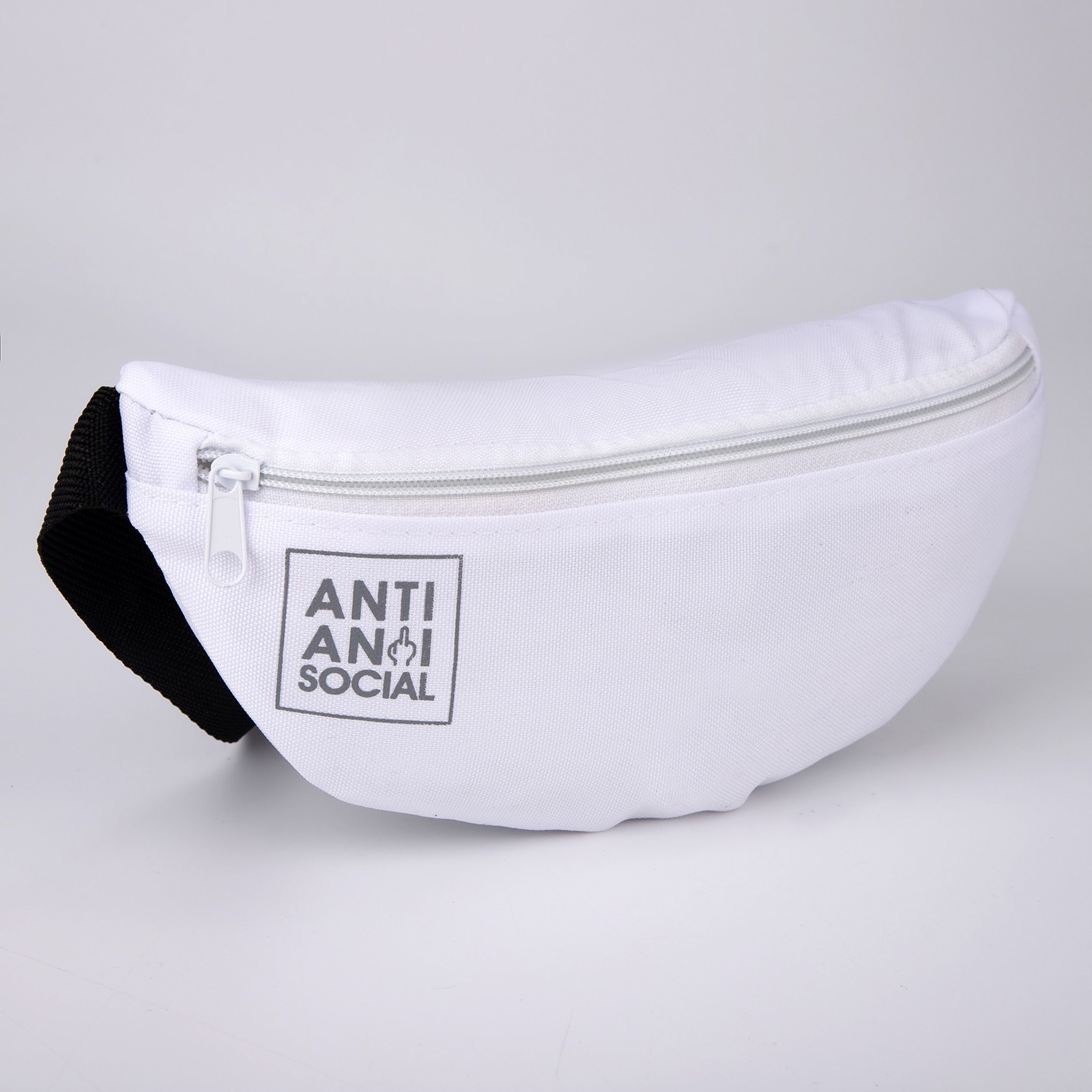 Сумка поясная "Anti social" на молнии, 32* 8*15 см, белый
