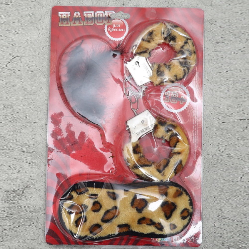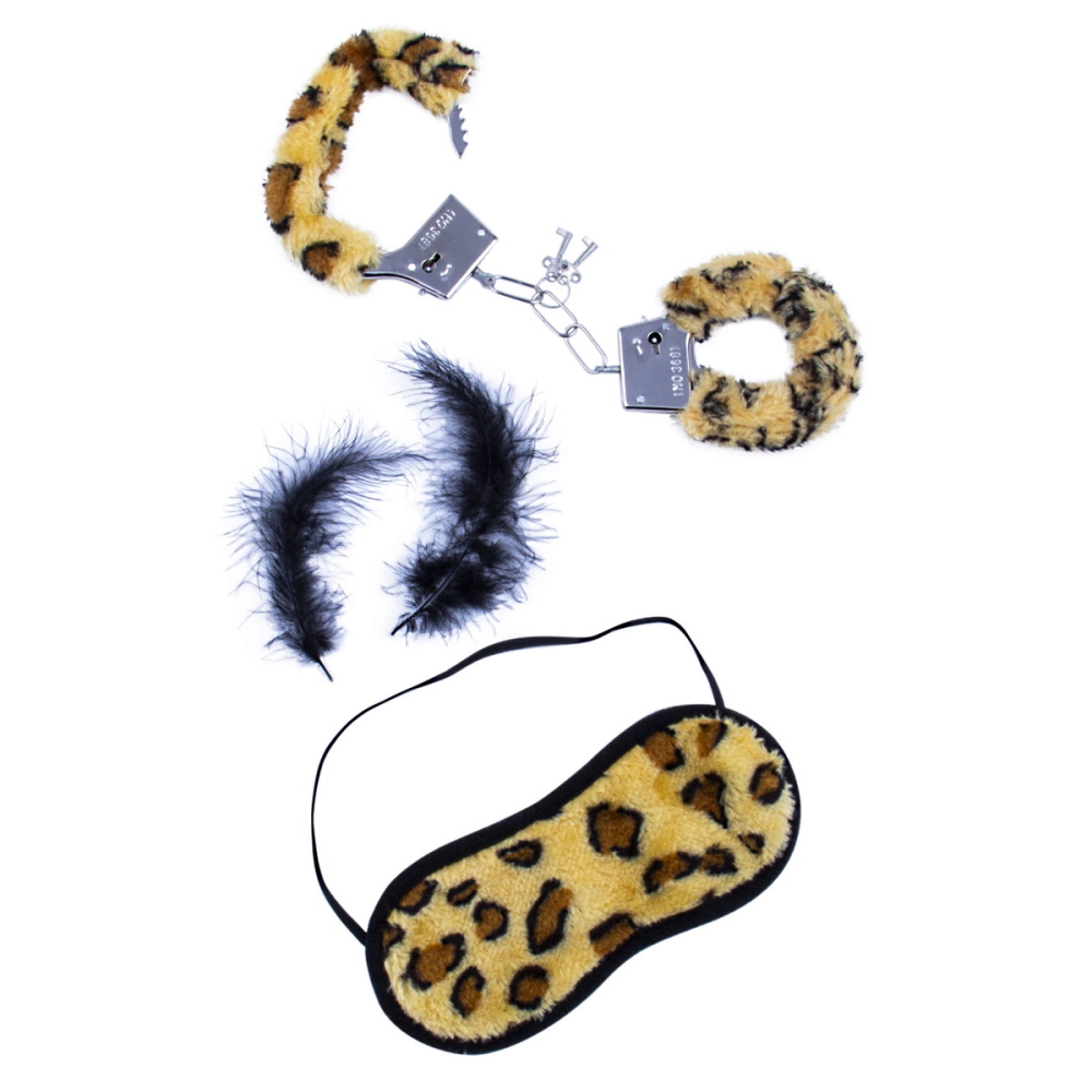 Эротический набор Наручники, перышко, маска Леопард