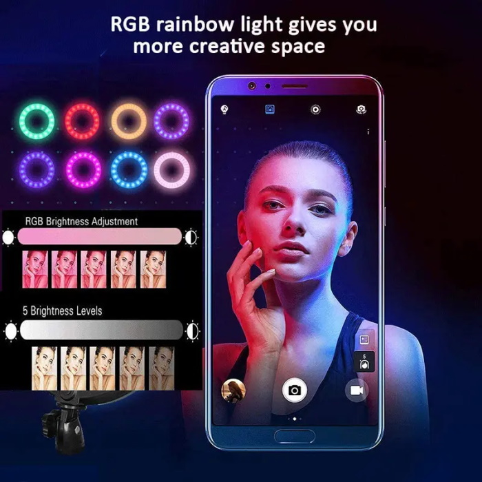 Многоцветная кольцевая лампа для фото и видеосъёмки MJ26 без штатива - это универсальное и необычное осветительное устройство дополнительного освещения.