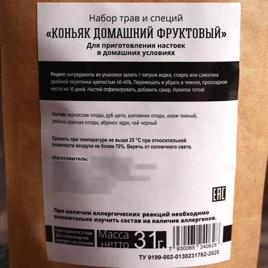Набор для приготовления алкоголя «Коньяк фруктовый»: набор трав и специй 31 г., штоф 500 мл., инструкция