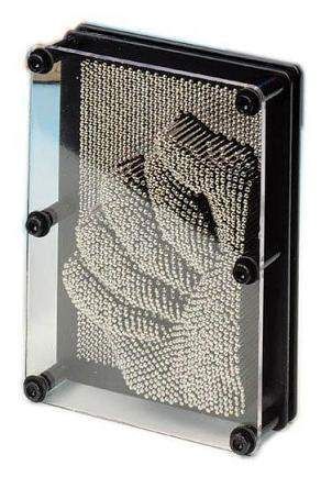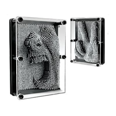 Хотите почувствовать себя создателем, и легким прикосновением руки сделать что-то необыкновенно красивое? Теперь это возможно благодаря нашему Экспресс-скульптору. Принцип его работы довольно прост- между двумя пластинами закреплены металлические стержни,которве позволяют отображать абсолютно любые реальные предметы. В мире столько вещей, достойных запечатления в произведении искусства,- к напримеру, Ваша пятка ладонь или пятка. Прижмите руку к обратной стороне нешего магического прибора, и новая, ункальная скульптура отобразится на лицевой части стройства. Или просто касаниями пальцев создайте прекрасный марсианский ландшафт.