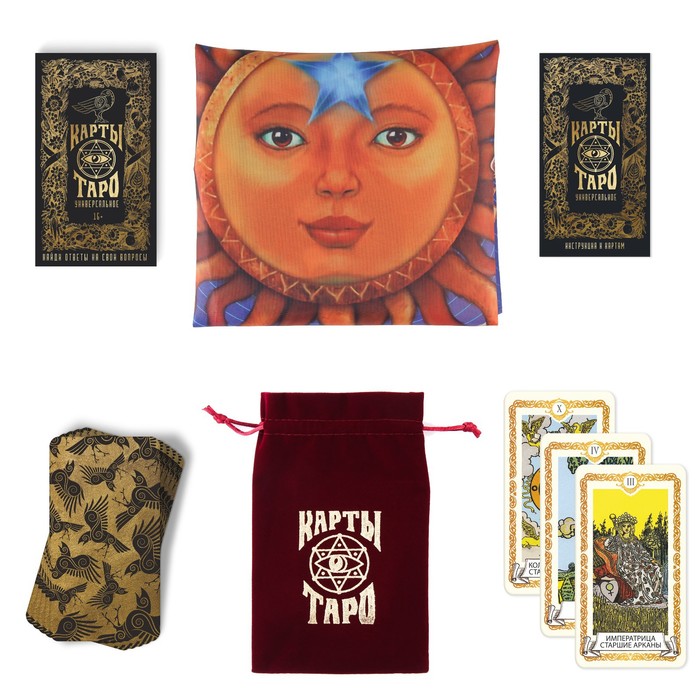 Перед вами уникальный гадальный набор. В нём вы найдёте не только классические карты Таро, но и особую скатерть для гадания. Редчайший дизайн карт придётся по вкусу и тем, кто увлекается гаданиями, и тем, кто только желает открыть для себя этот таинственный мир.