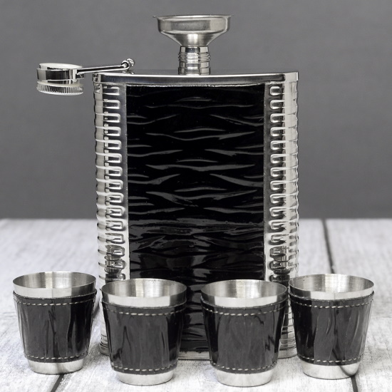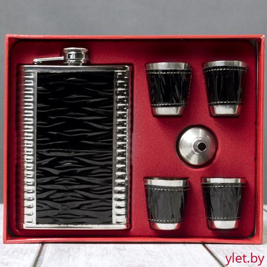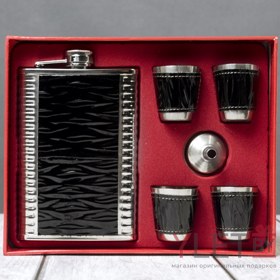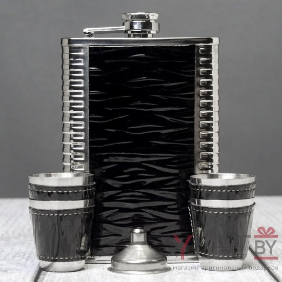 Набор с фляжкой и стопками Крокодил черный