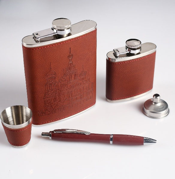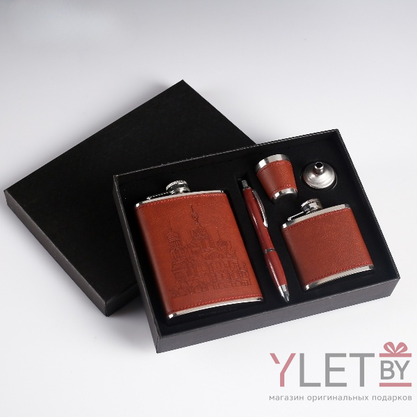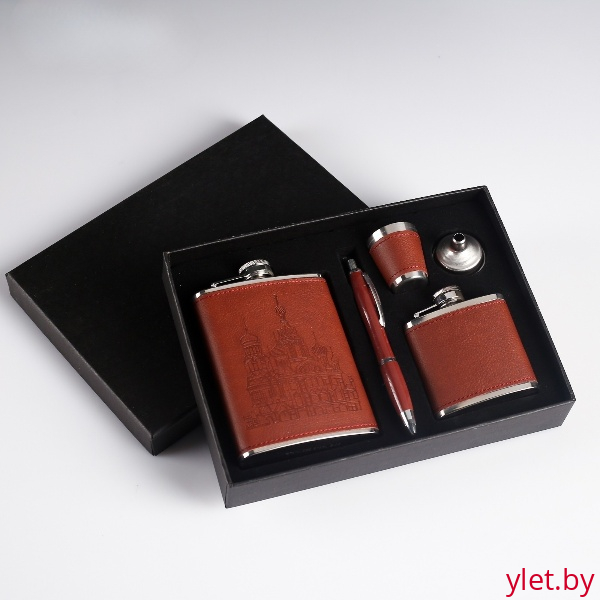 Набор "Собор" 5 в 1: фляжка 240 мл + фляжка 90 мл + рюмка + воронка + ручка