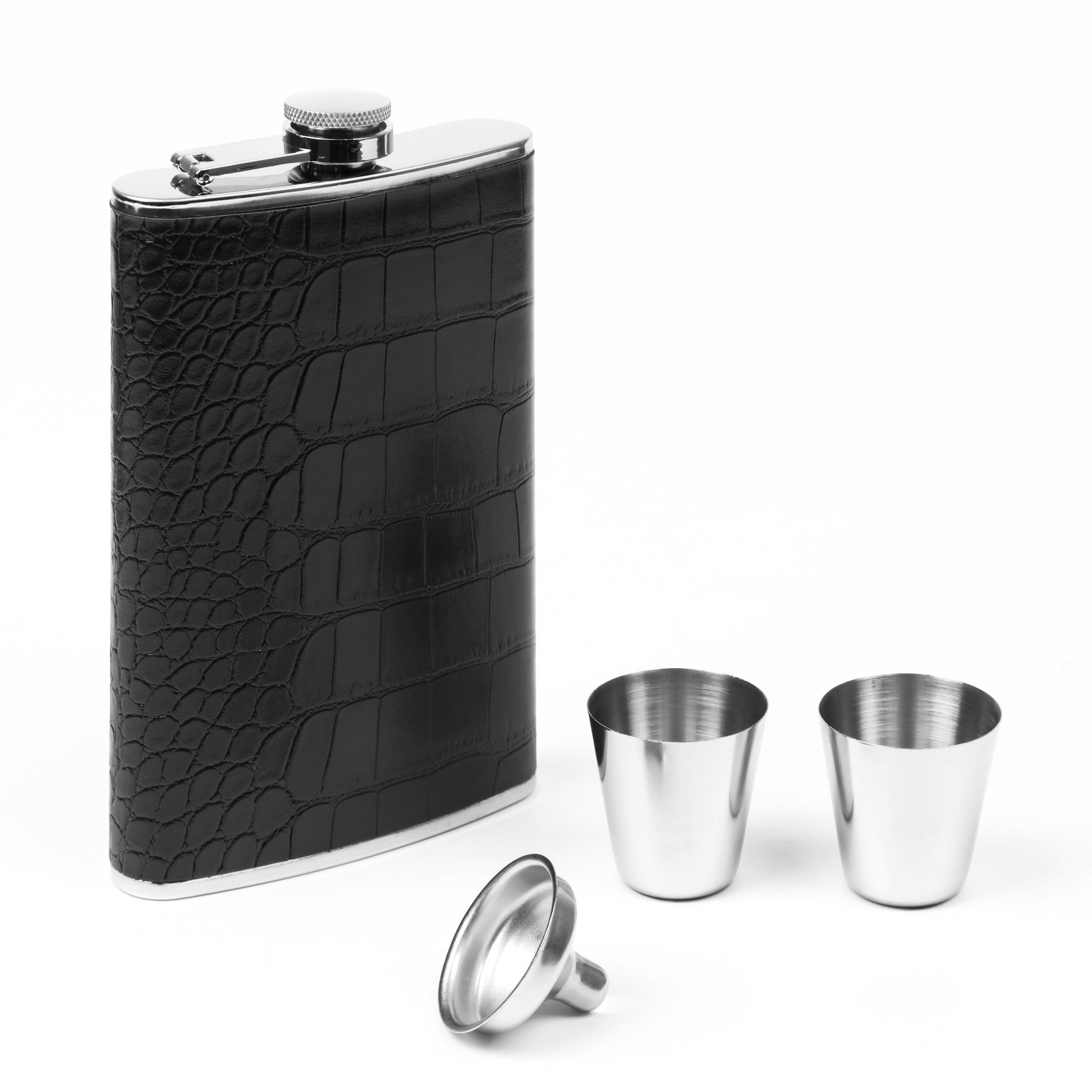Подарочный набор 4 в 1: фляжка чёрная 300 мл, воронка, 2 рюмки, 17 х 21.5 см