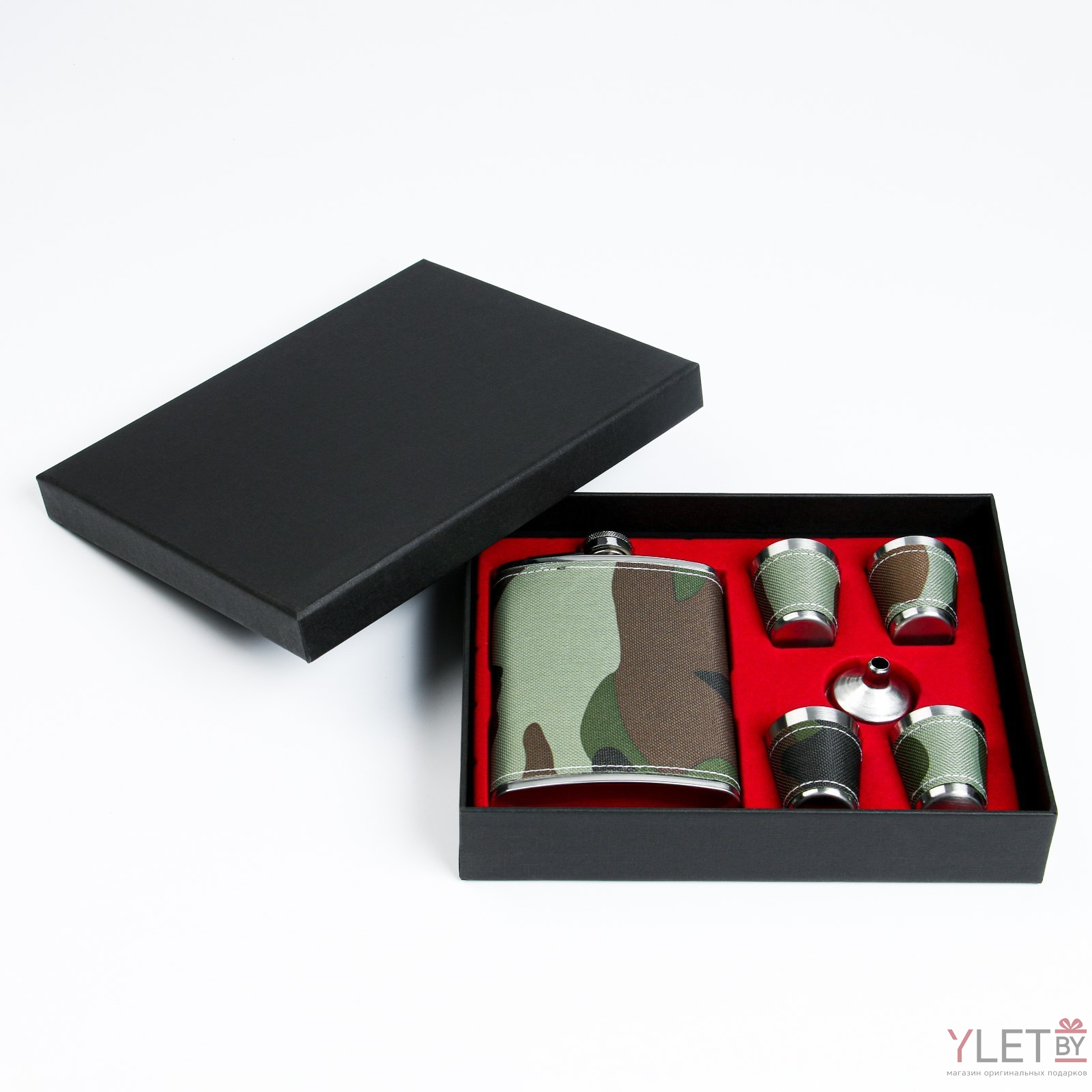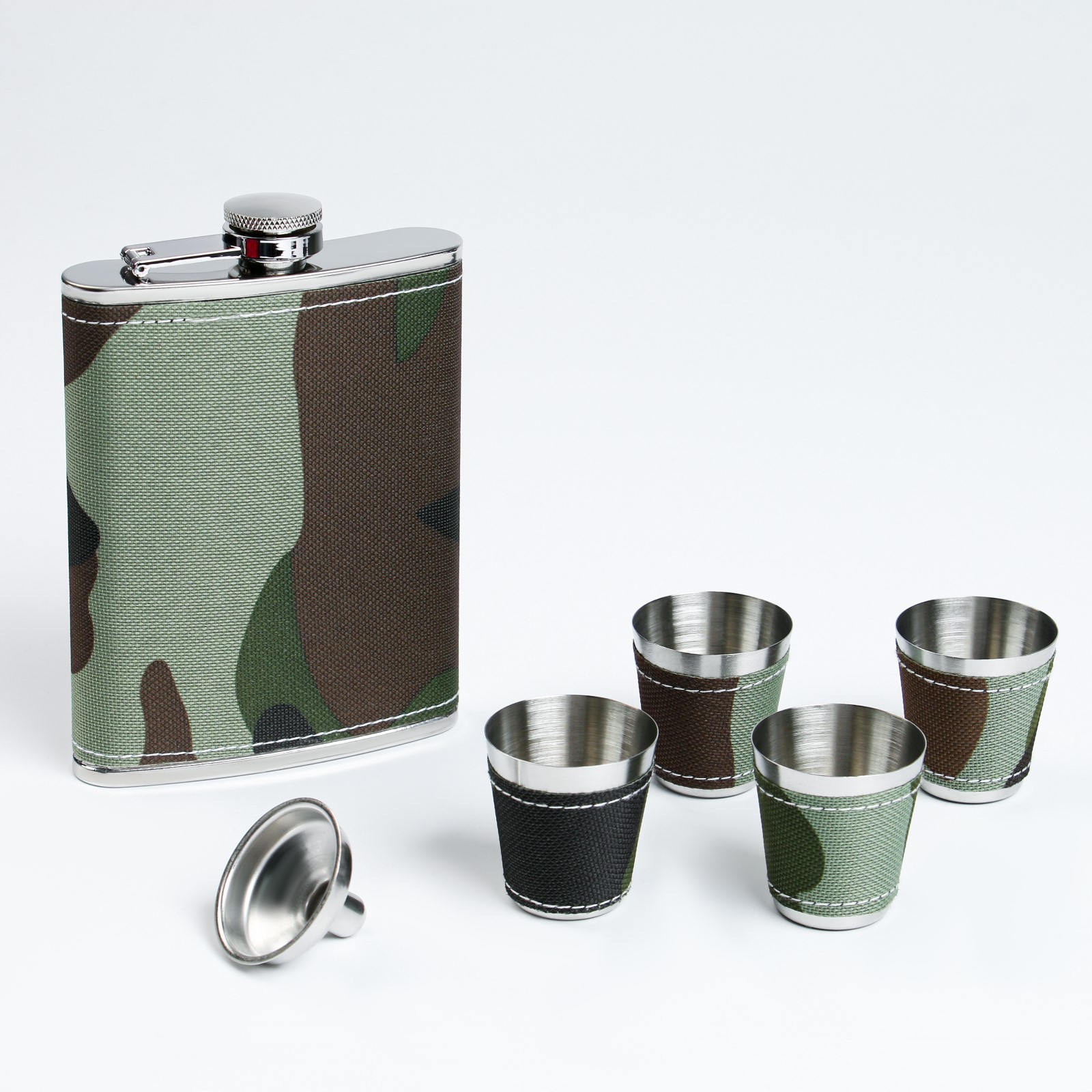 Подарочный набор 6 в 1 "Камуфляж": фляжка 240 мл, 4 стопки, воронка