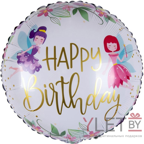 Шар (18''/46 см) Круг, С Днем Рождения (маленькие феи)