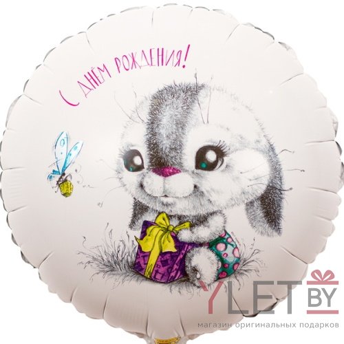 Шар (18''/46 см) Круг, С Днем Рождения. Зайка