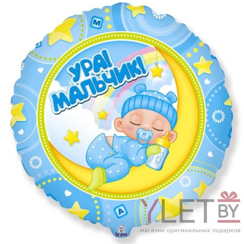 Шар (18''/46 см) Круг, Ура! Мальчик. Голубой