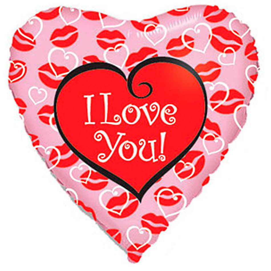 Шар (18''/46 см) Сердце, Я люблю тебя. Поцелуи, Розовый