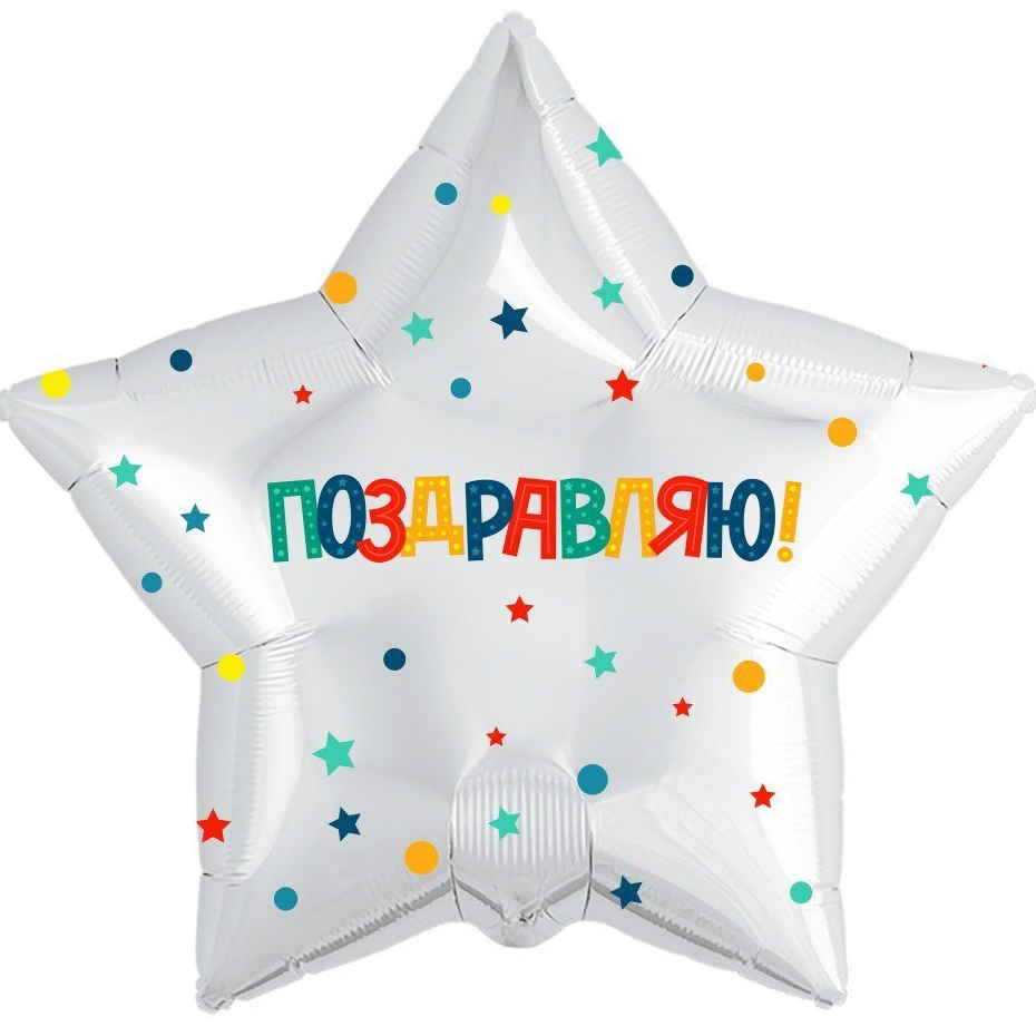 Шар (21''/53 см) Звезда, Поздравляю! Разноцветное конфетти и звездочки, Белый