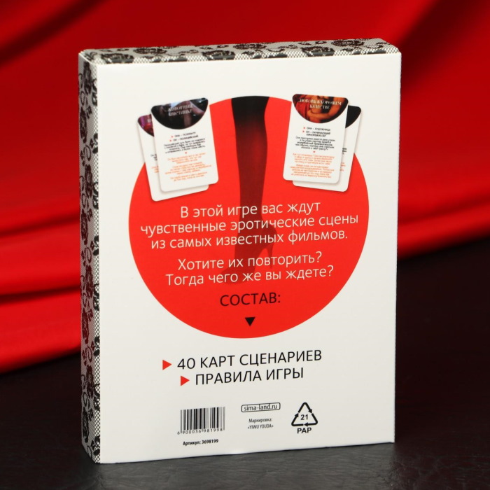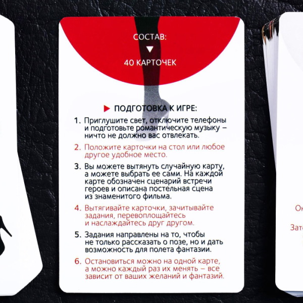 Вытягивайте карточки, зачитывайте задания, перевоплощайтесь и наслаждайтесь друг другом.