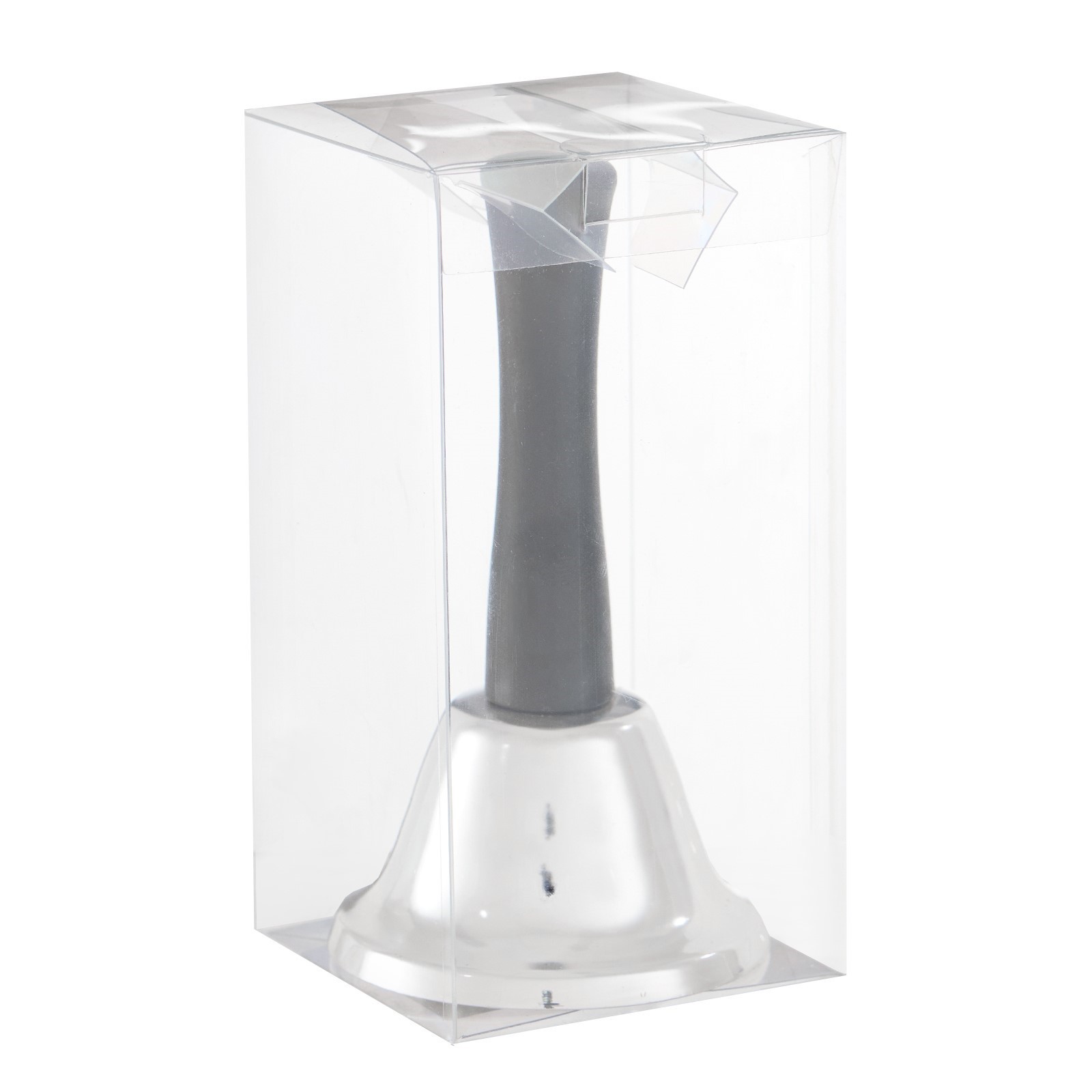 Этот стильный колокольчик изготовлен из высококачественного тонкого металла, что обеспечивает не только его прочность, но и чистоту звука, который он издает. Серебристый цвет придает ему современный и привлекательный вид, а удобная ручка позволяет легко удерживать изделие в руке.