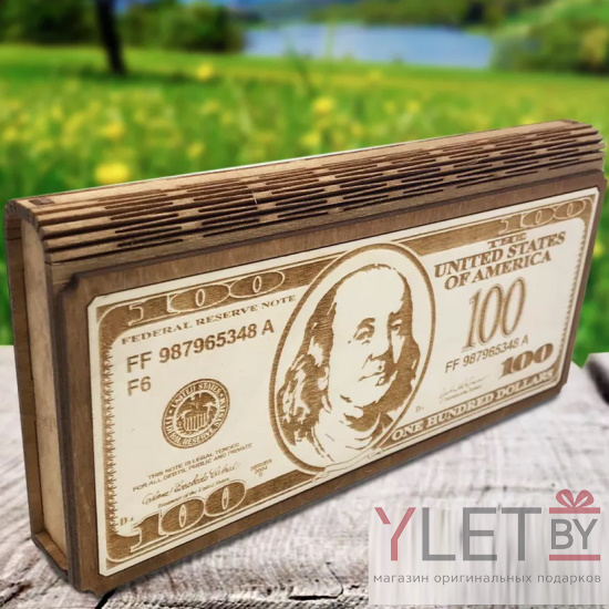 Уникальный деревянный конверт для денег с гравировкой 100$ представляет собой небольшую шкатулку, подходящую для купюр любого номинала, любой валюты или подарочного сертификата. Оригинальная подарочная коробка ответит на столь частый вопрос: "как упаковать подарок?". Конверт для денег подойдёт в качестве подарка на корпоратив, рождение ребёнка, день рождения, свадьбу, новый год, рождество и любой другой праздник. Такой подарок не покажется тривиальным, ведь изделия из дерева всё больше и больше набирают популярность. Купюрница - это интересный предмет декора для дома который впишется в любой интерьер. Креплением на деревянной шкатулке служит небольшой, но крепкий магнит. Дизайн коробочки для подарков выполнен с учётом малейших деталей рисунка. Открытка для денег так же может послужить копилкой для детей и взрослых. Шкатулка может выступить в роли своеобразного свадебного сундучка для казны. Изделие может использоваться в качестве реквизита к свадебным конкурсам или поможет создать свадебное оформление. Отличный подарок для коллег , друзей, родных и близких.