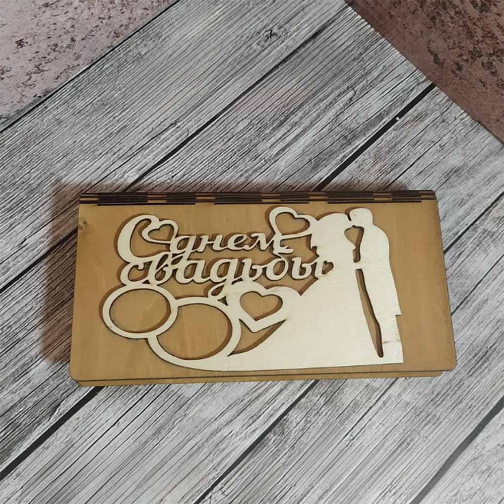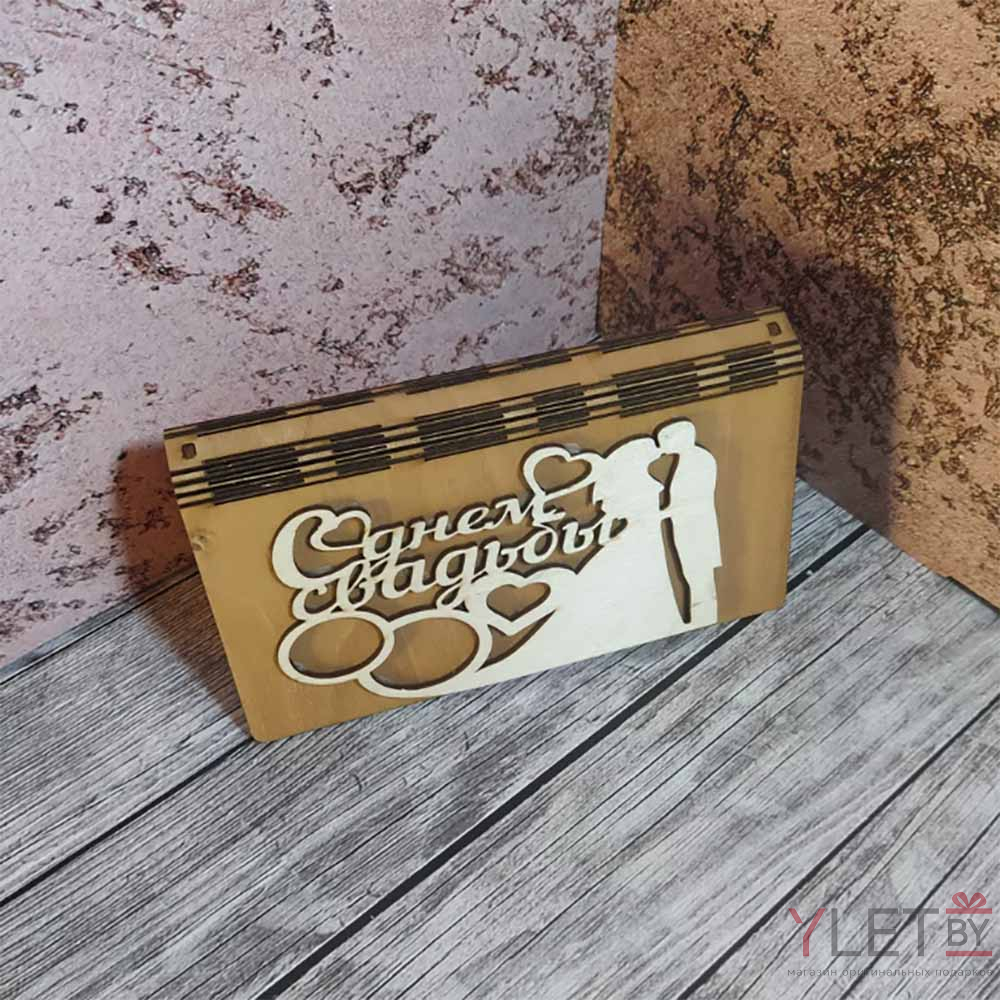 Деревянный конверт/купюрница для денег "С Днем Свадьбы, молодожены"