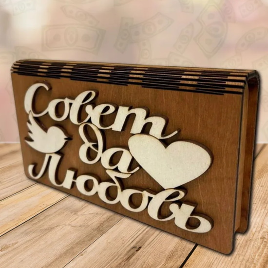 Конверт для денег, купюрница, открытка, шкатулка для украшений. Подходит для различных купюр, драгоценностей, украшений, сертификатов. Наш подарочный конверт изготовлен из экологически чистой фанеры. Оригинальная шкатулка впишется в ваш интерьер и очень лаконично дополнит его.