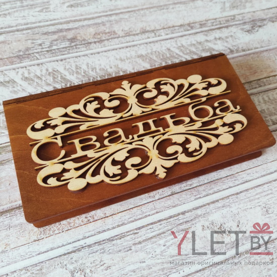 Деревянный конверт купюрница для денег Свадьба