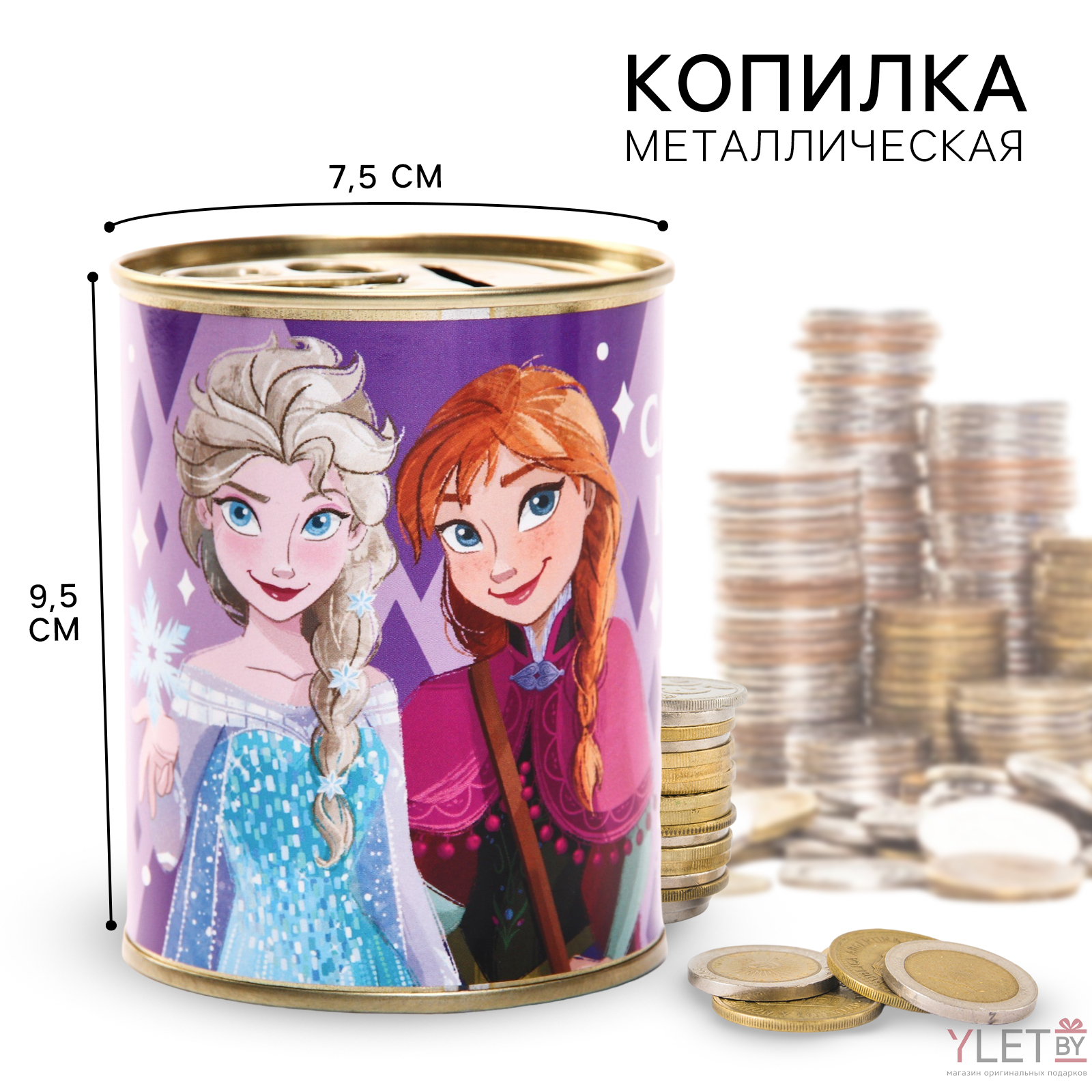 Копилка металлическая, 9.5 см × 7.5 см × 7.5 см «Анна и Эльза», Холодное Сердце