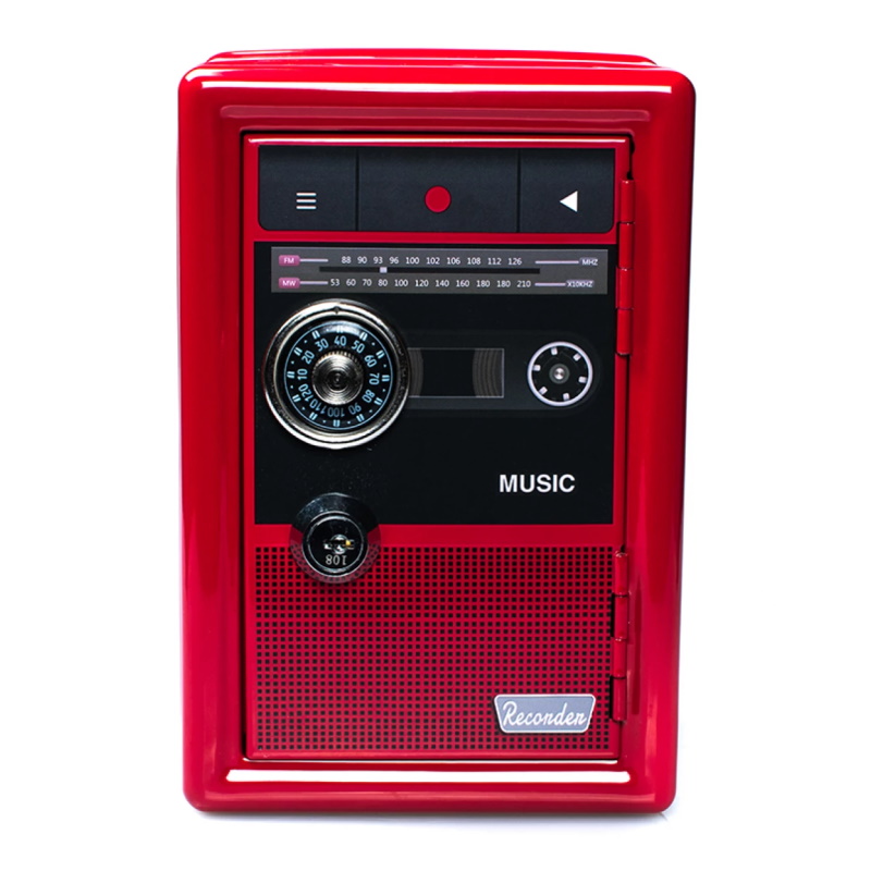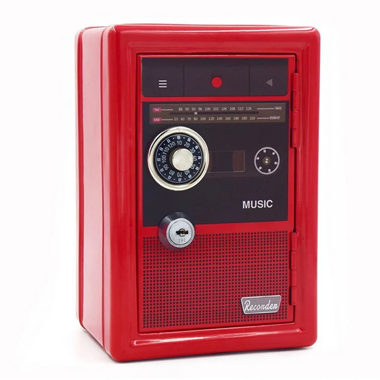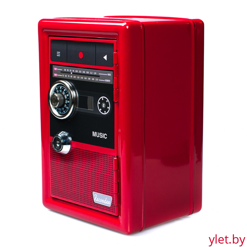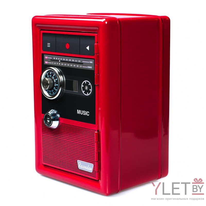 Небольшой настольный металлический сейф-копилка с двумя отделениями - для хранения бумаг и выдвижным ящичком для мелочи, - своим винтажным дизайном напоминает старинный радиоприёмник. Ручка настройки частоты это на самом деле ручка кодового замка. Замок-щеколда открывается поворотом по часовой или против часовой стрелки до характерного звука. Под ним расположен замок, к которому прилагается комплект из двух ключей. Рекомендуем хранить запасной ключ отдельно, на случай утраты основного.