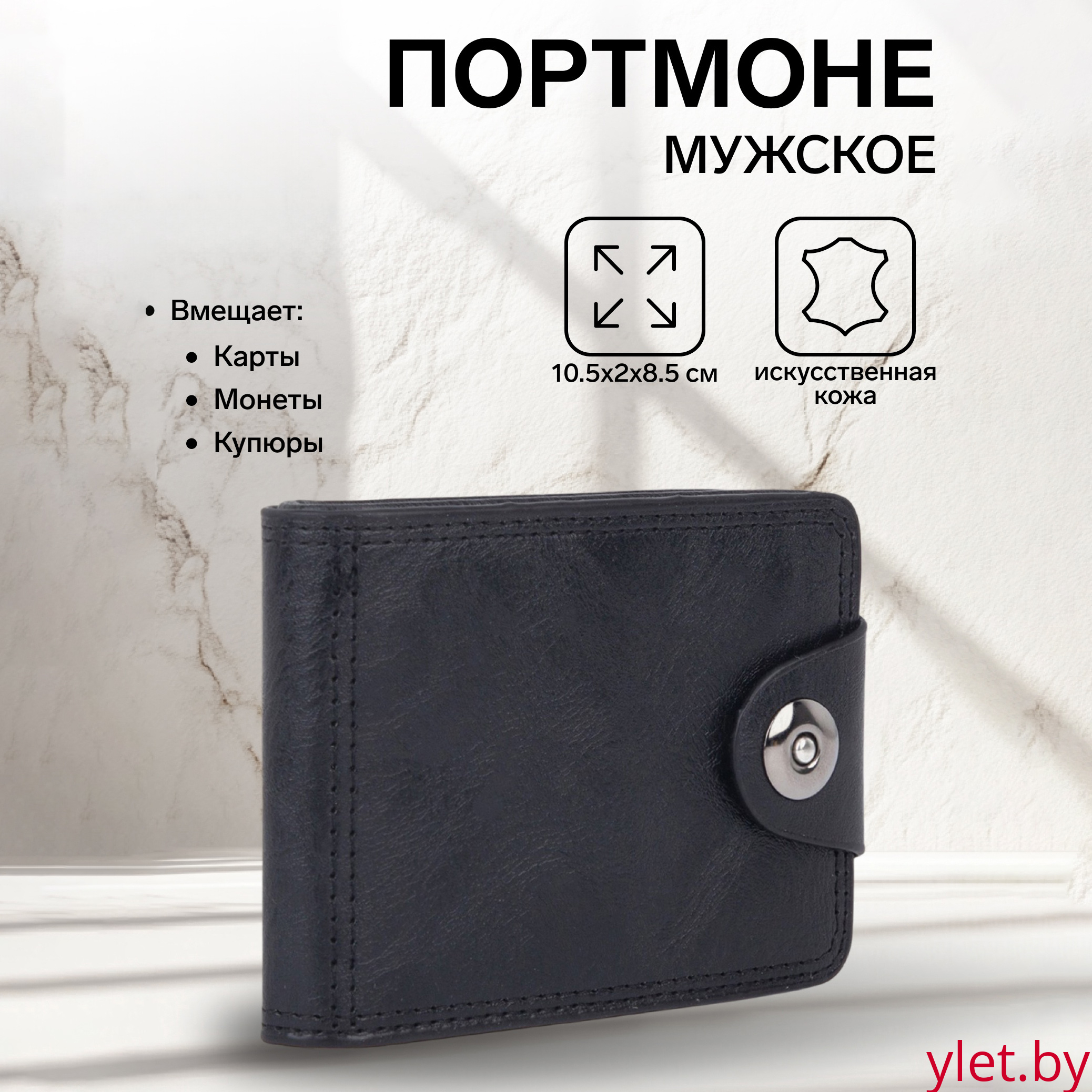 Портмоне мужское "Классик" на магните, для купюр, для карт, для монет, цвет чёрный
