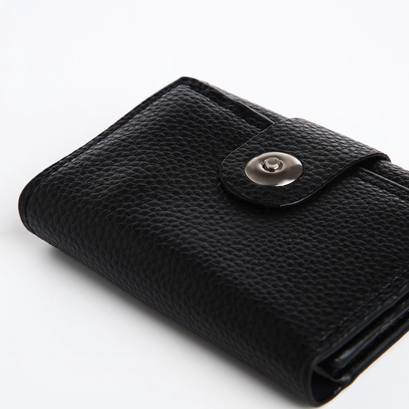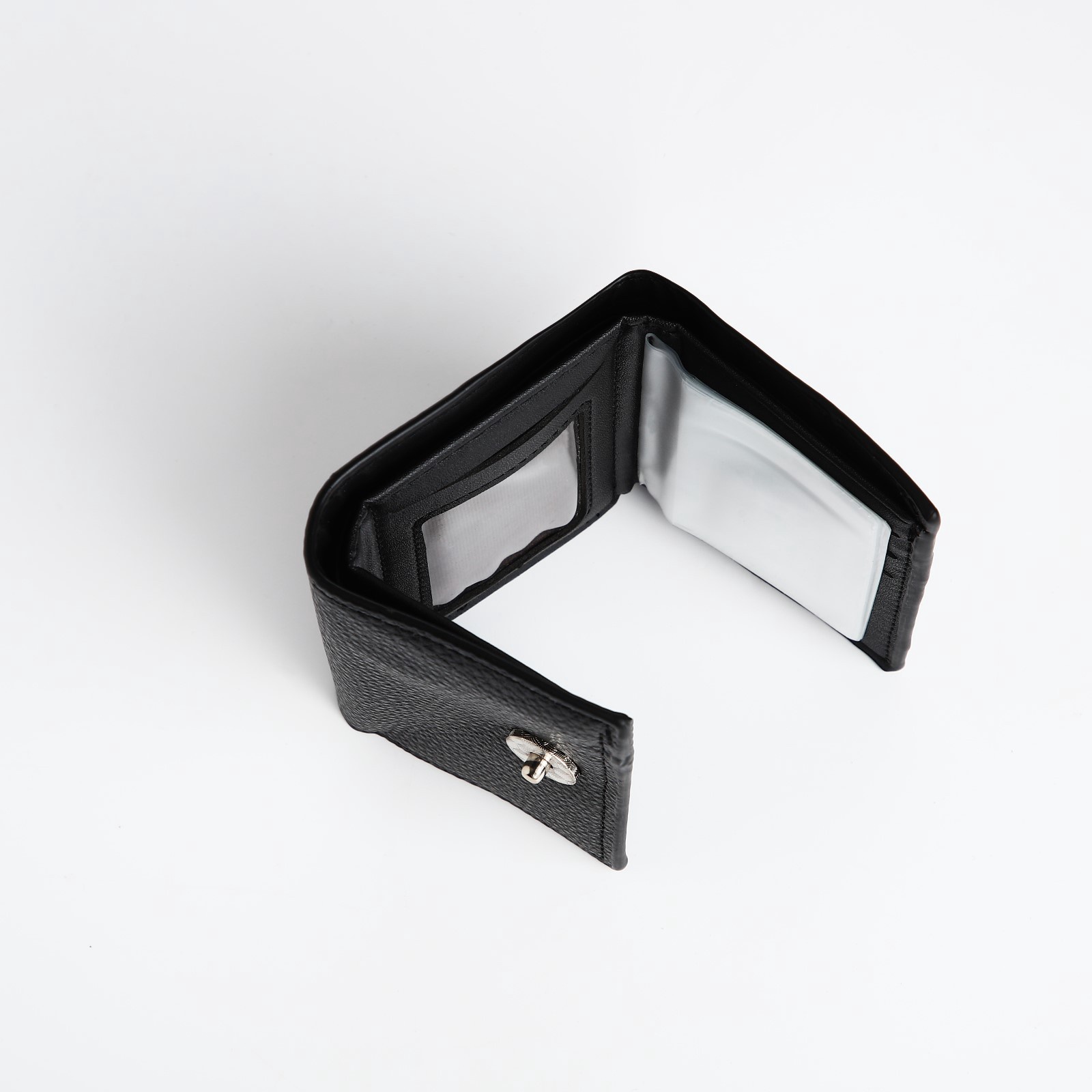 Мужское портмоне на магните — идеальный аксессуар для современного мужчины, которому важна удобство и стиль. Выполненное из качественной искусственной кожи в классическом черном цвете, это портмоне гармонично сочетает элегантный дизайн и практичность.