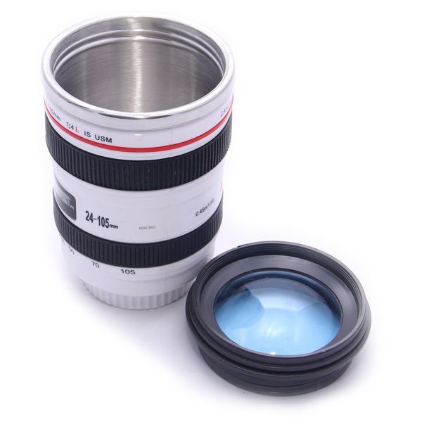 - Кружка-объектив. Тематический подарок для фотографов. Кружка выполнена в виде объектива дорогого фотоаппарата так, что даже профессионал с первого взгляда не отличит “подделку”. Кружка закрывается крышкой и внутри покрыта нержавеющей сталью.