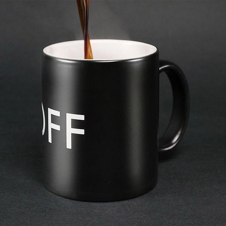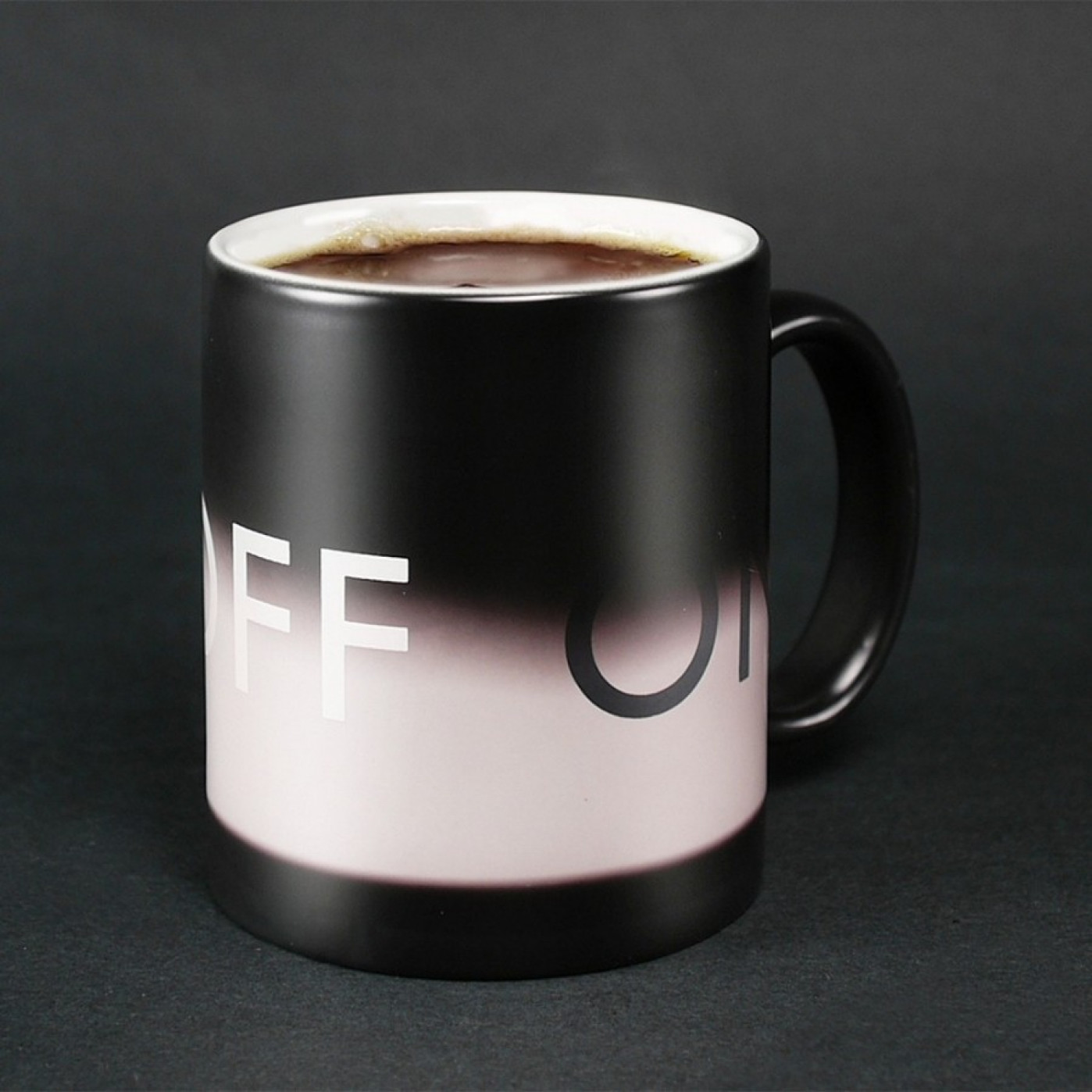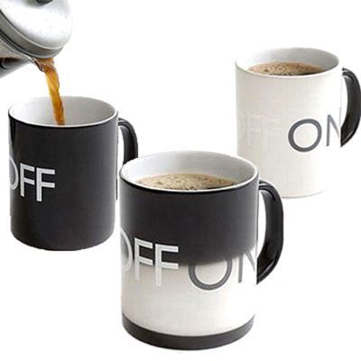 Эта оригинальная кружка ON-OFF поможет вам легко узнать горячий ли внутри напиток или уже остыл, даже не пробуя содержимое. Все просто. Изначально кружка черного цвета с белой надписью OFF. Но стоит Вам только налить в нее что-нибудь горячее, то она сразу же изменит цвет на белый и уже черными буквами будет написано ON. Теперь ваша кружка как хамелеон сможет менять свой цвет в зависимости от температуры напитка и удивлять ваших друзей и коллег.