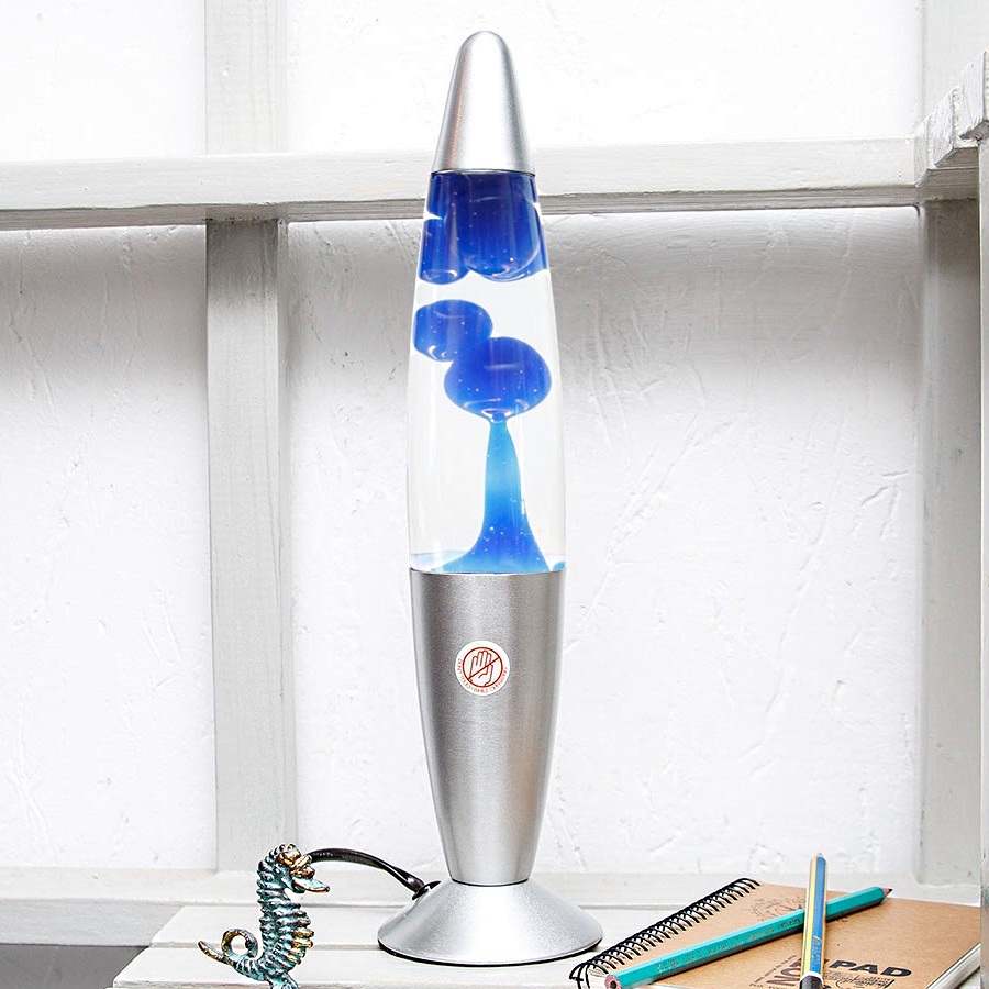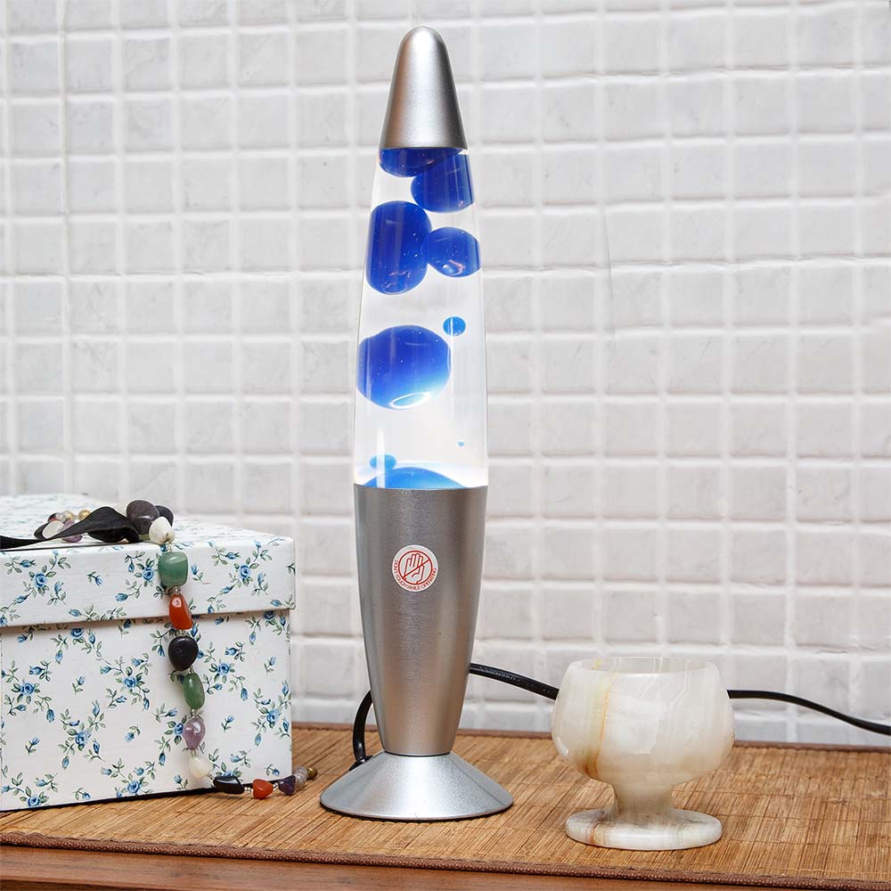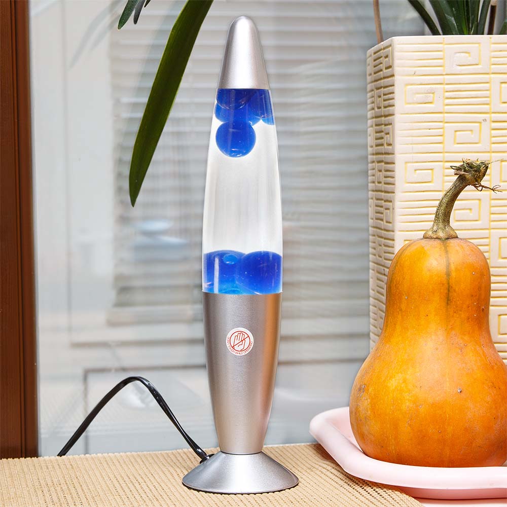 Лава лампа с воском в сером корпусе 42 см Синяя