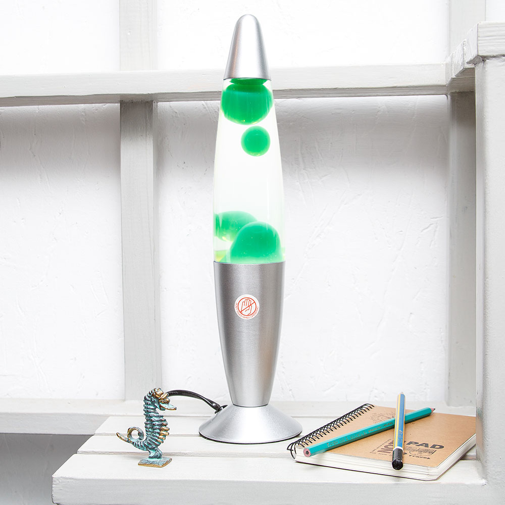 Лава лампа с воском в сером корпусе 42 см Зеленая