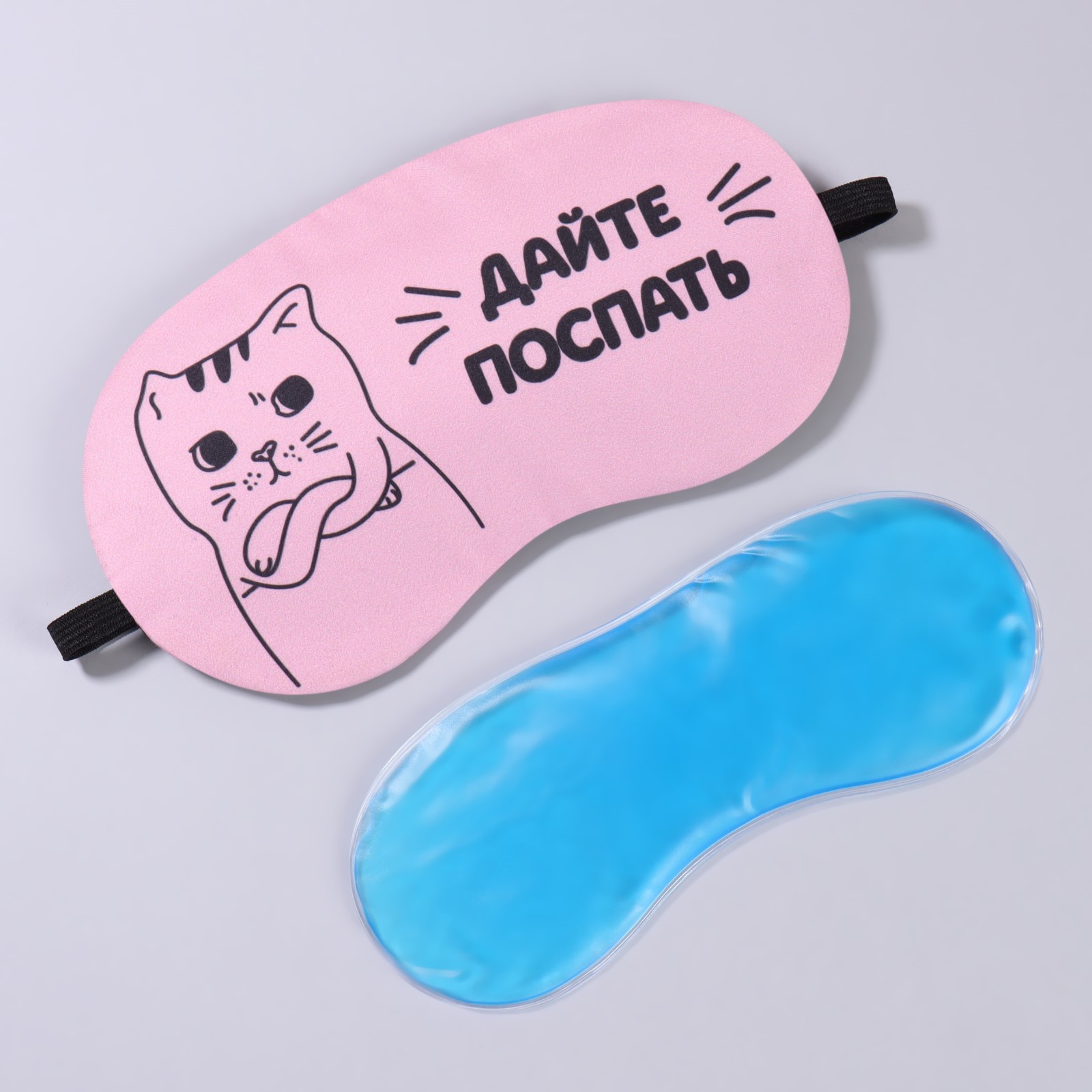 Маска для сна с гелевым вкладышем «Котик», 19 × 10 см, резинка одинарная, цвет розовый