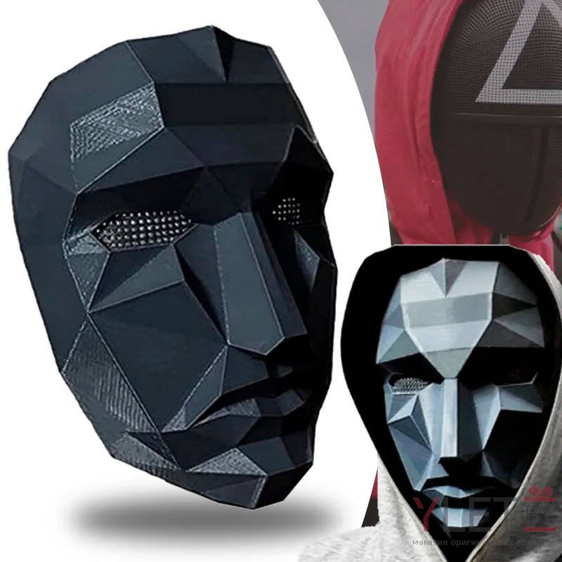 Маска из сериала Игра в Кальмара. Это не просто блестящий способ выделиться на вечеринке. С такой маской можно сделать крутые видеоролики и атмосферные фотографии, ну или просто обращать на себя внимание других людей. Маска очень удобная позволяет носить ее долго без какого либо дискомфорта.