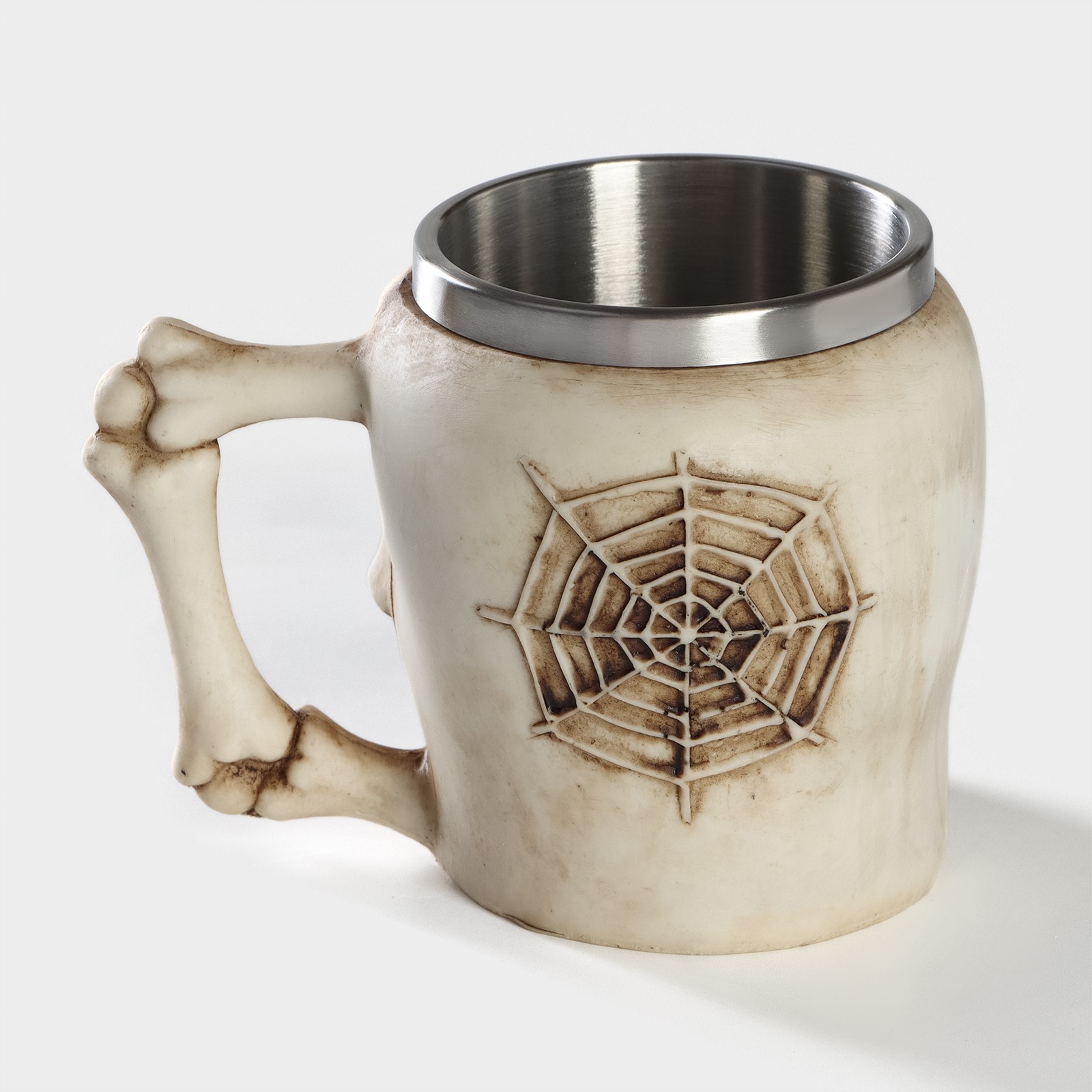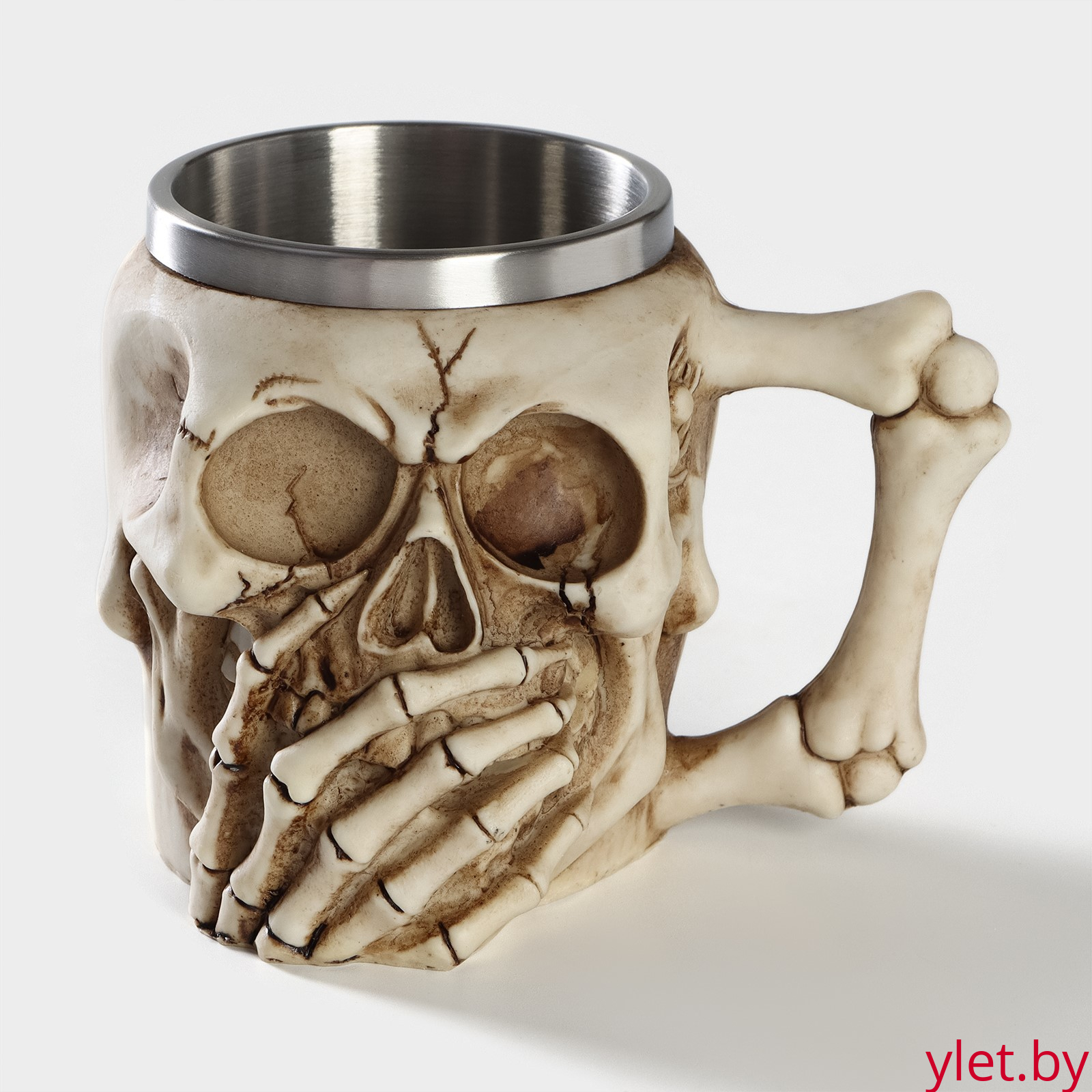 Кружка «Череп, скелет», 400 мл, цвет бежевый (металл внутри)