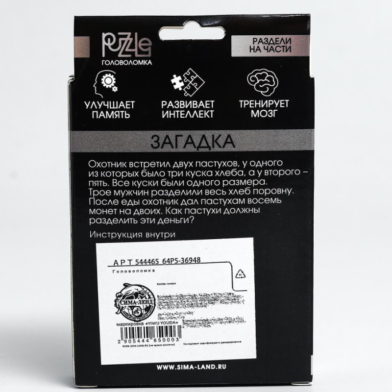 Головоломка Игры разума "Раздели на части" №6 - это уникальный товар, способствующий развитию эрудиции, воображения, логического мышления, смекалки и умения концентрировать внимание. Хотите продемонстрировать друзьям свои интеллектуальные способности? Головоломка Игры разума "Раздели на части" №6 поможет Вам в этом.