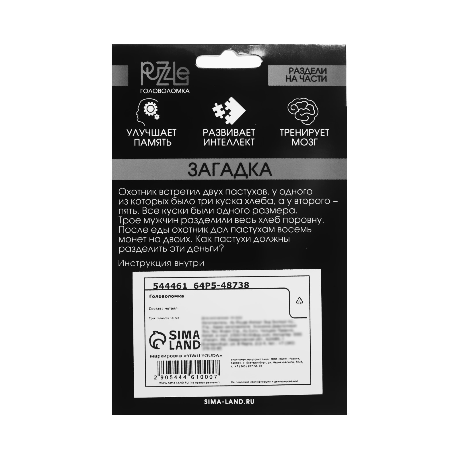 Повысьте уровень своих умственных способностей с новой головоломкой «Раздели на части» №2 из серии Игры разума! Эта металлическая головоломка — отличный способ развивать эрудицию, воображение, логическое мышление и смекалку.