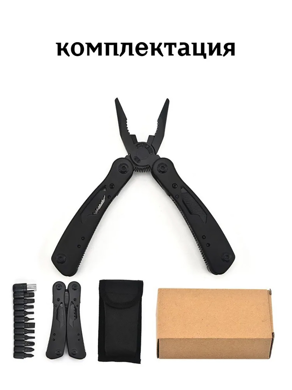 - Набор насадок: В комплект входит набор специально подобранных насадок, которые расширяют возможности использования мультитула. Вы будете готовы к любой ситуации, будь то ремонт, кемпинг или экстренные случаи.