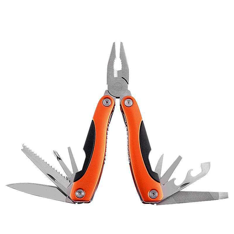 Оснастка мультитула: • Плоскогубцы • Кусачки • Нож • Линейка • Напильник • Пила по дереву • Ребра на рукоятках для колки орехов • Интрумент для чистки рыбы • Крестовая отвертка • Плоская отвертка: 2 шт • Открывалка для бутылок • Открывалка для консервных банок