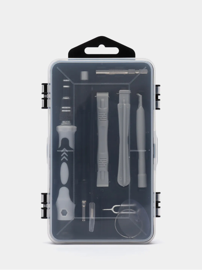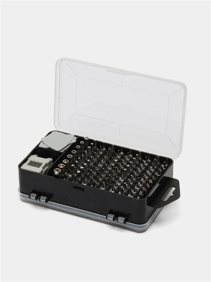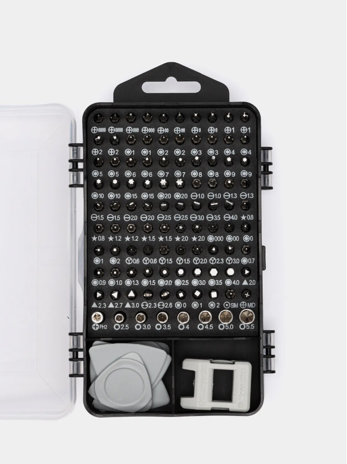 - Удобство в работе: Набор легко справляется с точными задачами благодаря разнообразию бит и инструментов. Идеально подходит для ремонта смартфонов, ноутбуков, бытовой техники и других мелких предметов.