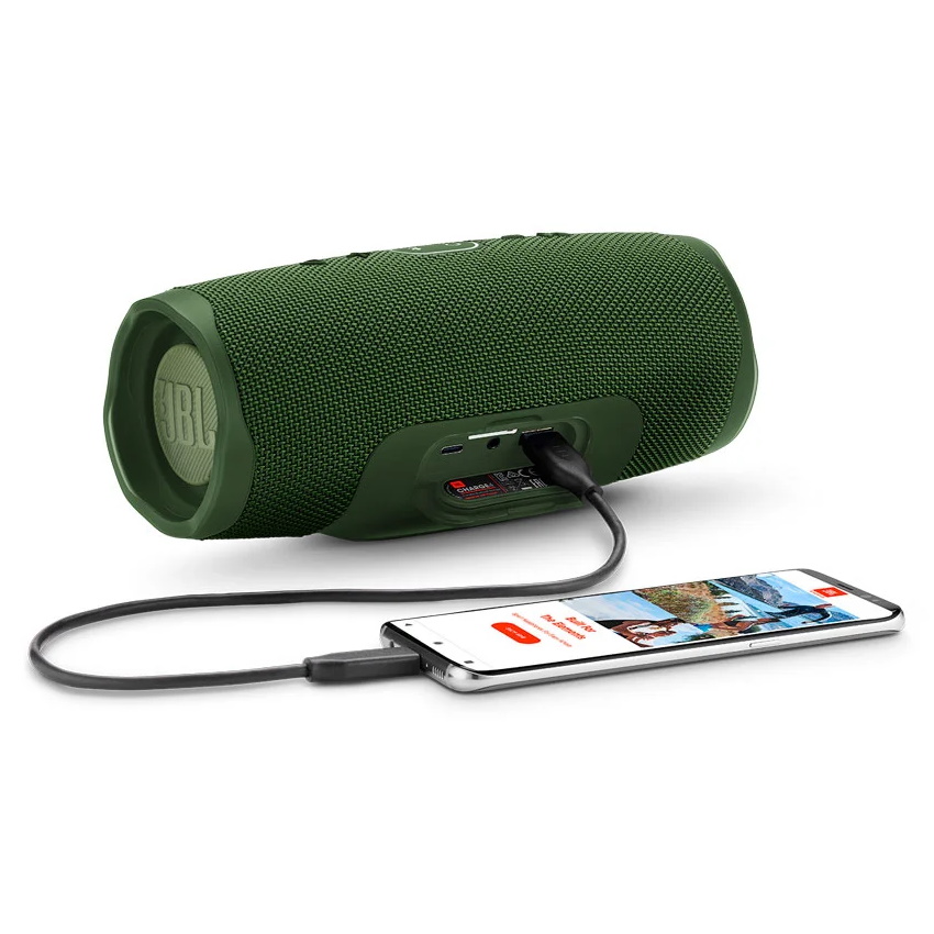 Портативная колонка JBL Charge 4 с функцией Bluetooth, мощным звуком и встроенным аккумулятором для зарядки устройств. Запатентованные JBL динамики и два излучателя низких частот наполняют звук чистыми басами. Мощный литий-ионный аккумулятор емкостью 5000 мАч позволяет слушать музыку непрерывно до 5 часов.