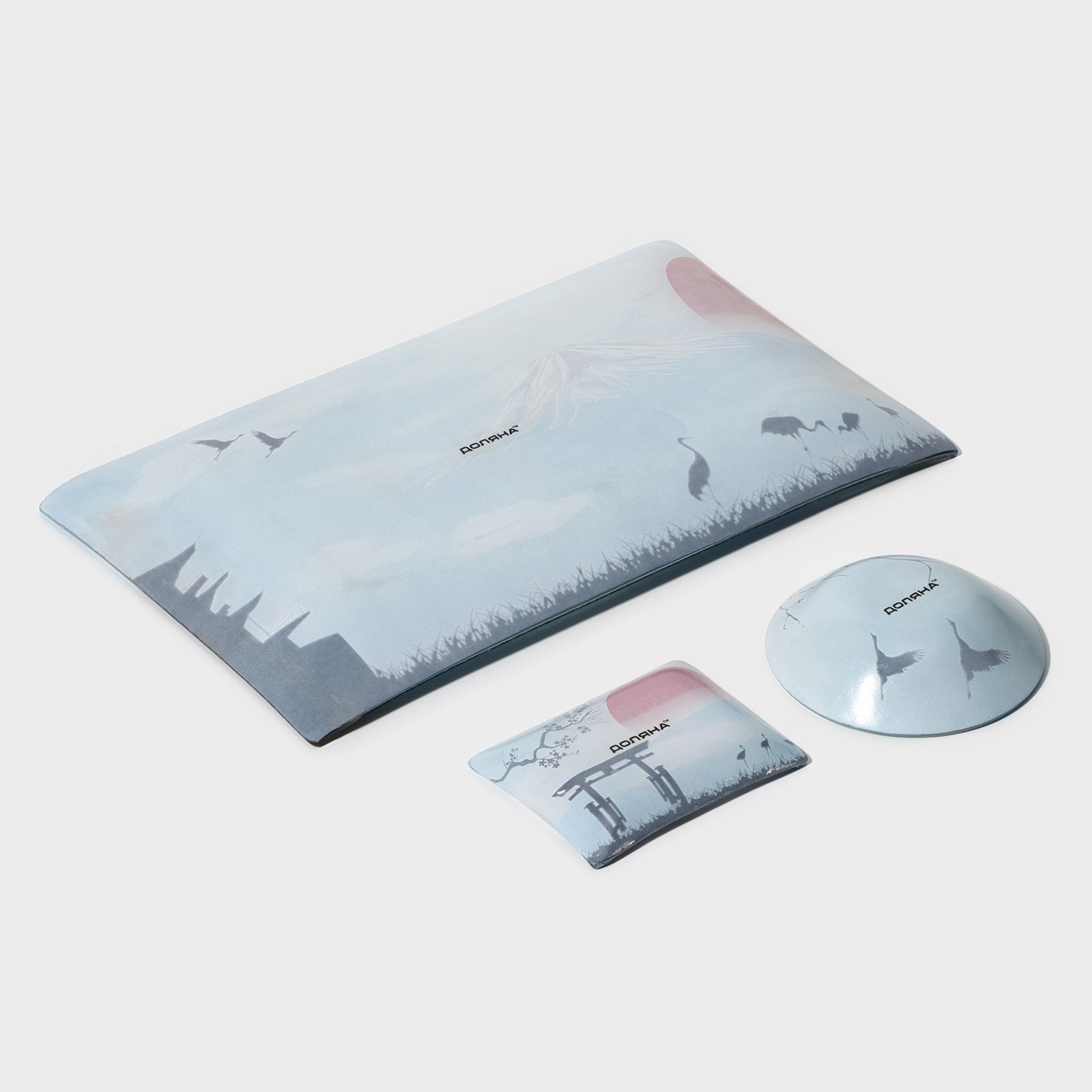 Дизайн с изображением журавлей создает атмосферу восточной элегантности и нежности, добавляя живописи к подаче ваших любимых суши и роллов. Подставка, размером 25×15 см, не только удобно удерживает соусники, но и может использоваться для хранения палочек для еды или салфеток, обеспечивая компактивность сервировки.