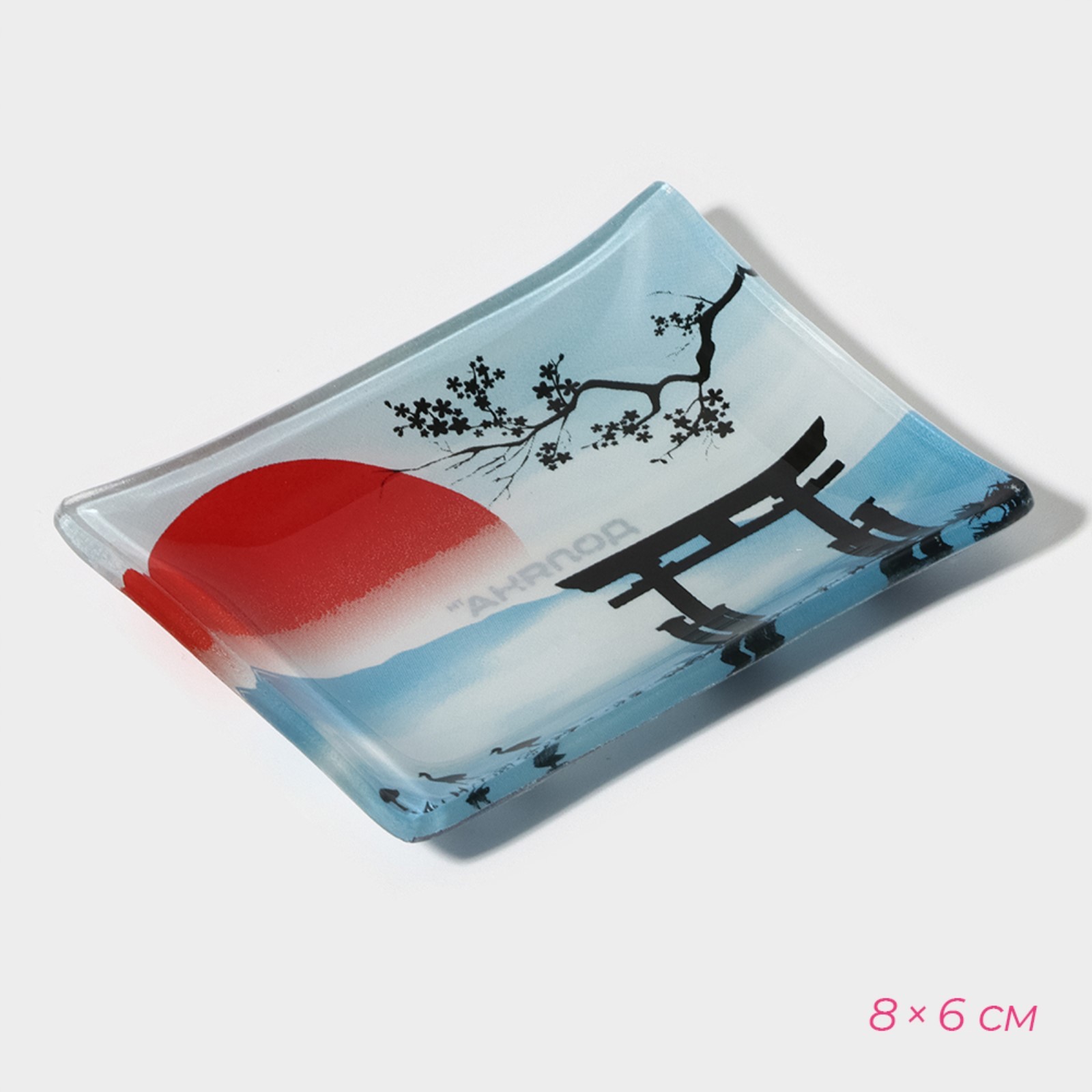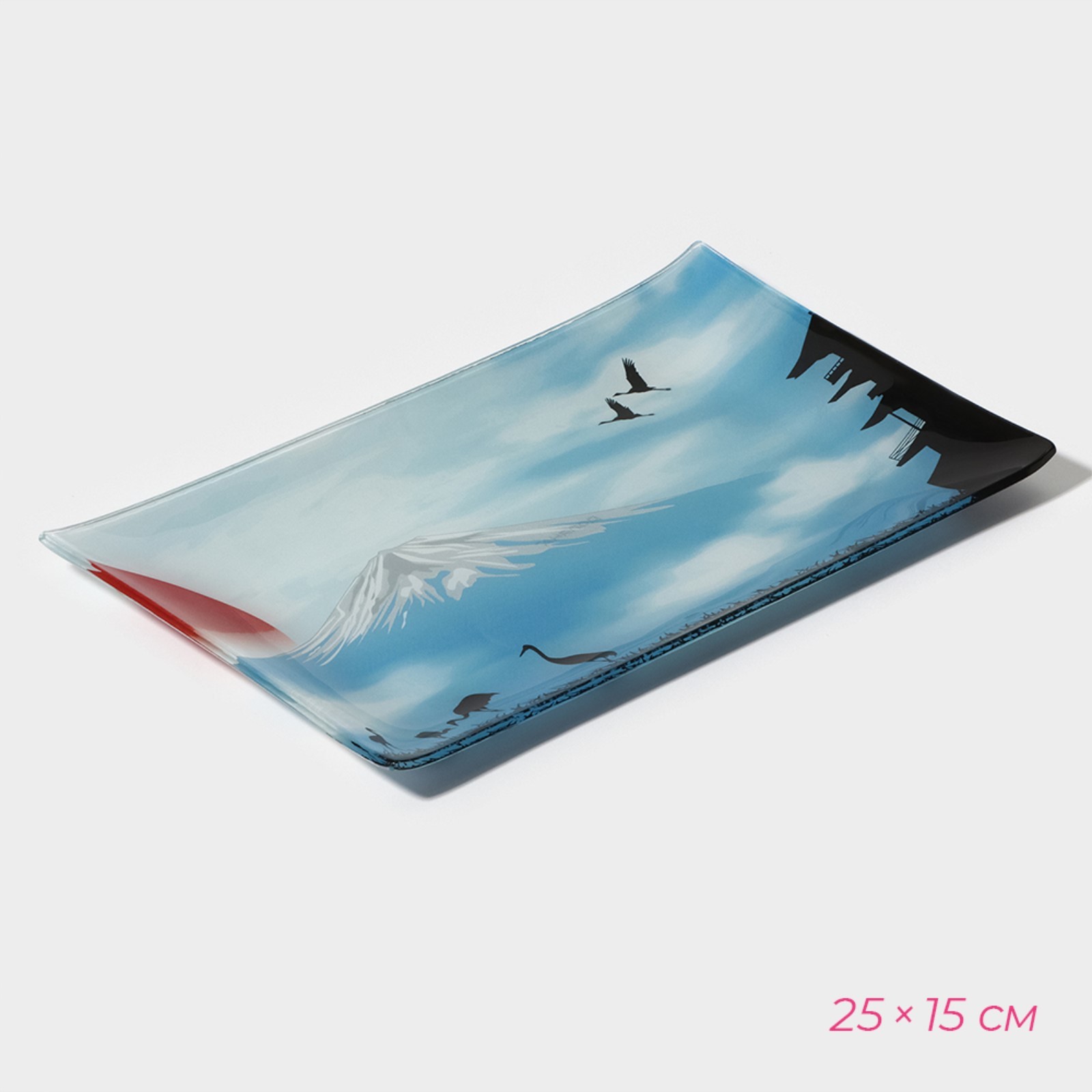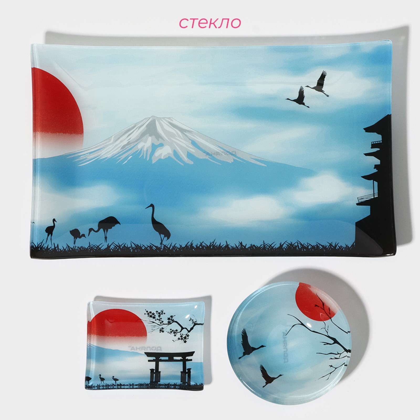 Набор для суши из стекла «Журавль», 3 предмета: соусники 8×2 см, 8×6 см, подставка 25×15×2 см