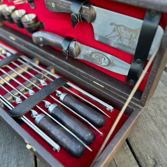У нас вы можете приобрести современный шашлычный набор, который вам обязательно пригодится для отдыха на природе Отличная и незаменимая вещь на отдыхе на природе!