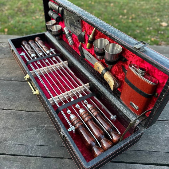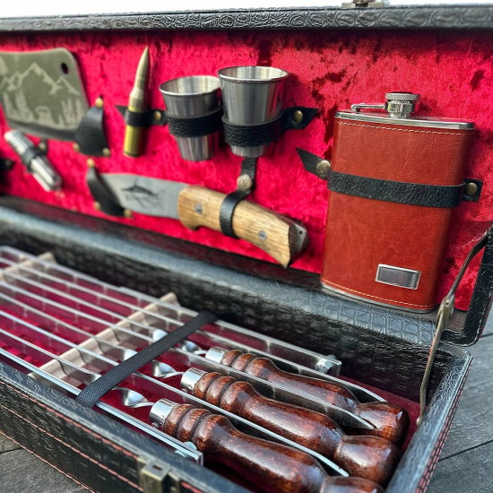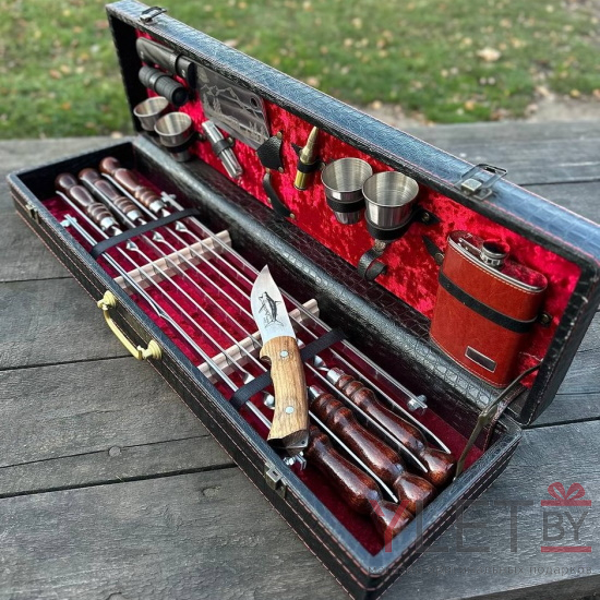 Подарочный шашлычный набор станет достойным презентом для близких, друзей, партнёров и руководителя. Мы предлагаем шашлычные наборы отличного качества, которые будут радовать Вас на протяжении долгих лет. Шашлычный набор стoит купить мужу, друзьям, начaльнику - шeфу или коллеге пo рaбoте!Комплектация: