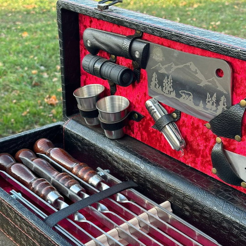 У нас вы можете приобрести современный шашлычный набор, который вам обязательно пригодится для отдыха на природе Отличная и незаменимая вещь на отдыхе на природе!